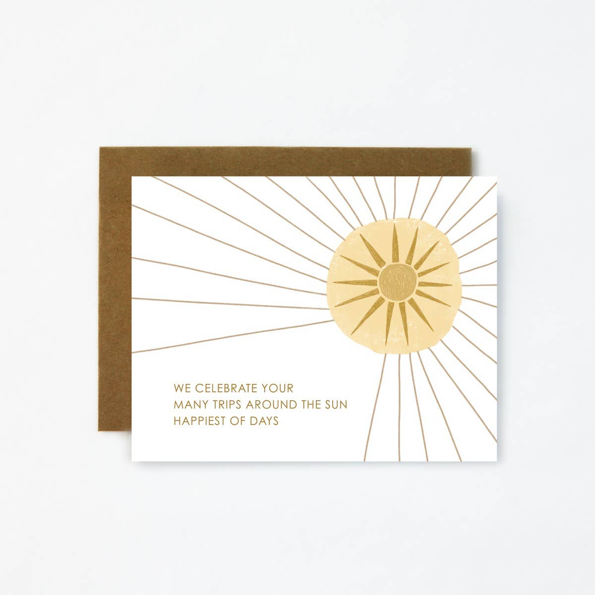 A bright birthday card full of optimism. Original haiku on outside of card reads: "On this bright birthday May optimism and beauty Permeate your life" â–²size A2, 4.25 by 5.5 inches folded â–²110# felt paper â–²packed in a cello sleeve with kraft envelope *Plastic free packaging available upon request. A peelable sticker will be placed to hold the card and envelope together. Remove sticker with care. â–²blank inside â–²made in the USA