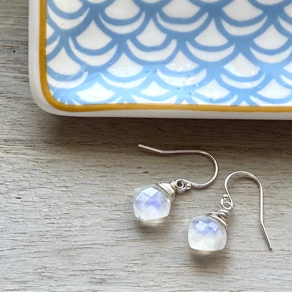 The tiniest of all the circle earrings! These shiny, hammered sterling silver circles measure just shy of 1/2” in diameter. They hang on beaded sterling silver earwires. Little and cute!