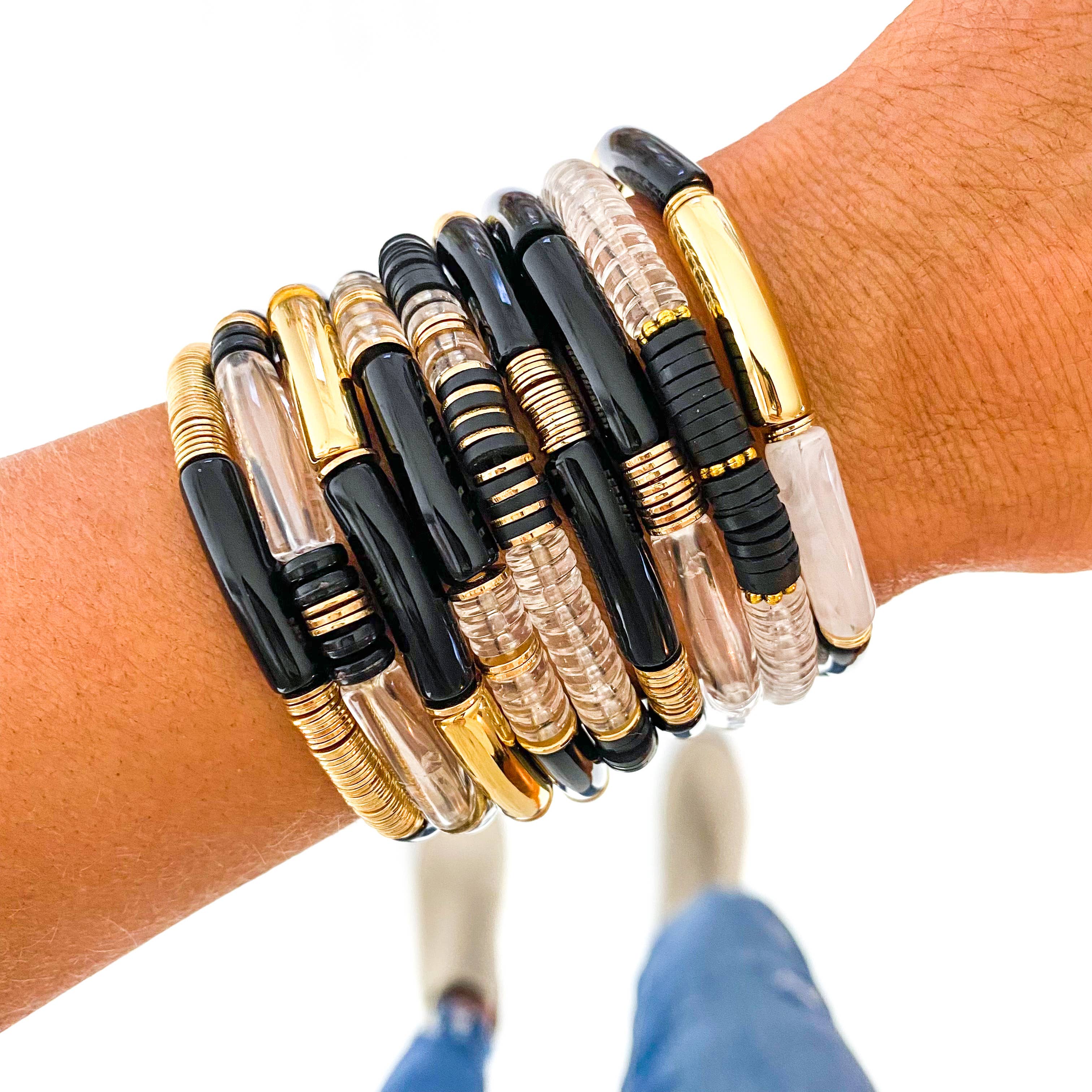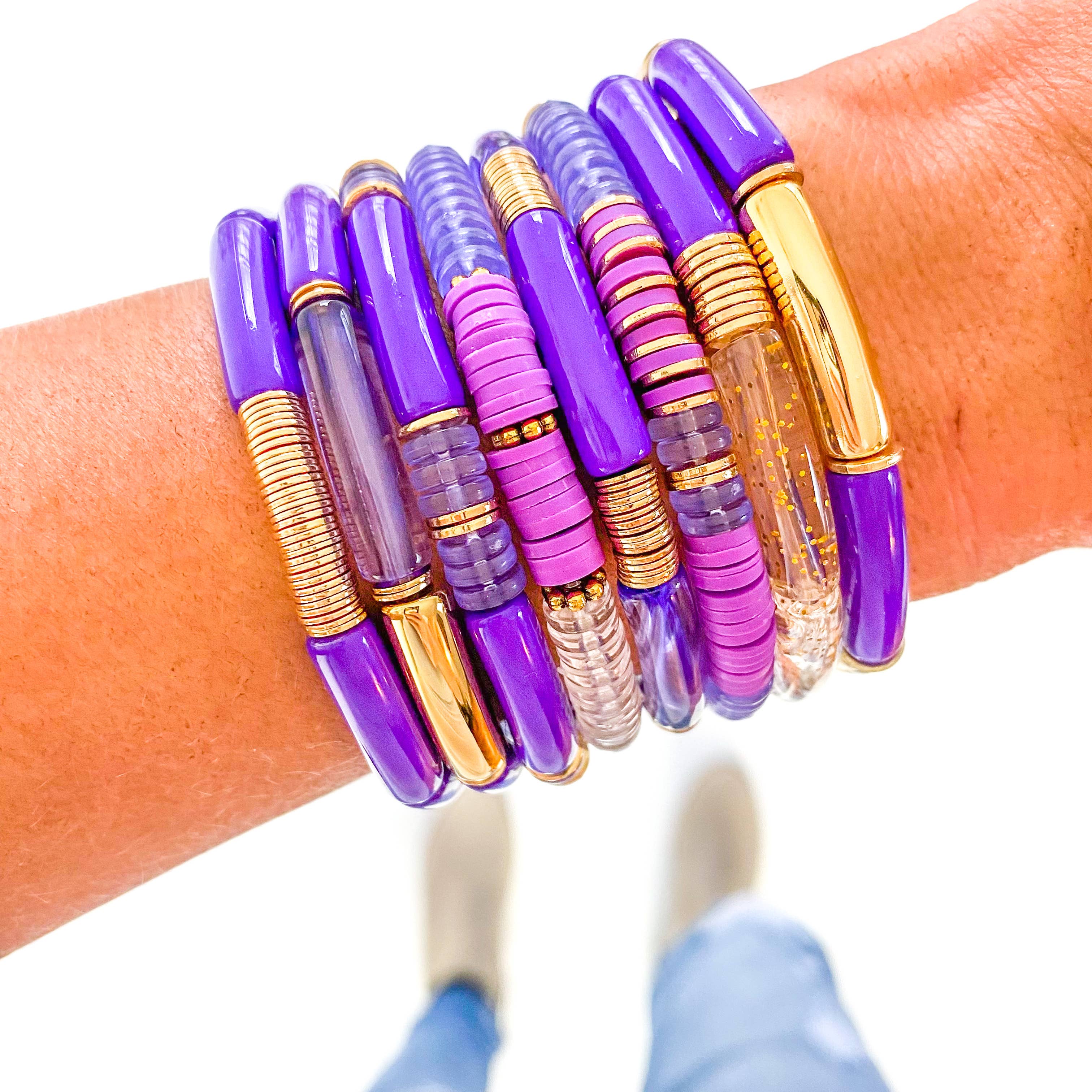 -You will receive 8 Individual Bracelets - Stretch - Standard Size- Fits 7.5 Inch wrist comfortably -Made with High quality acrylic. *-You can add these to our Bracelet Towers so customers can mix and match (sold seperately) Our Acrylic Tube Bamboo Bracelets are the perfect fun statement bracelet. You can mix and match with other acrylic tube bamboo bracelets or any of our other bracelet styles to make unique pieces.