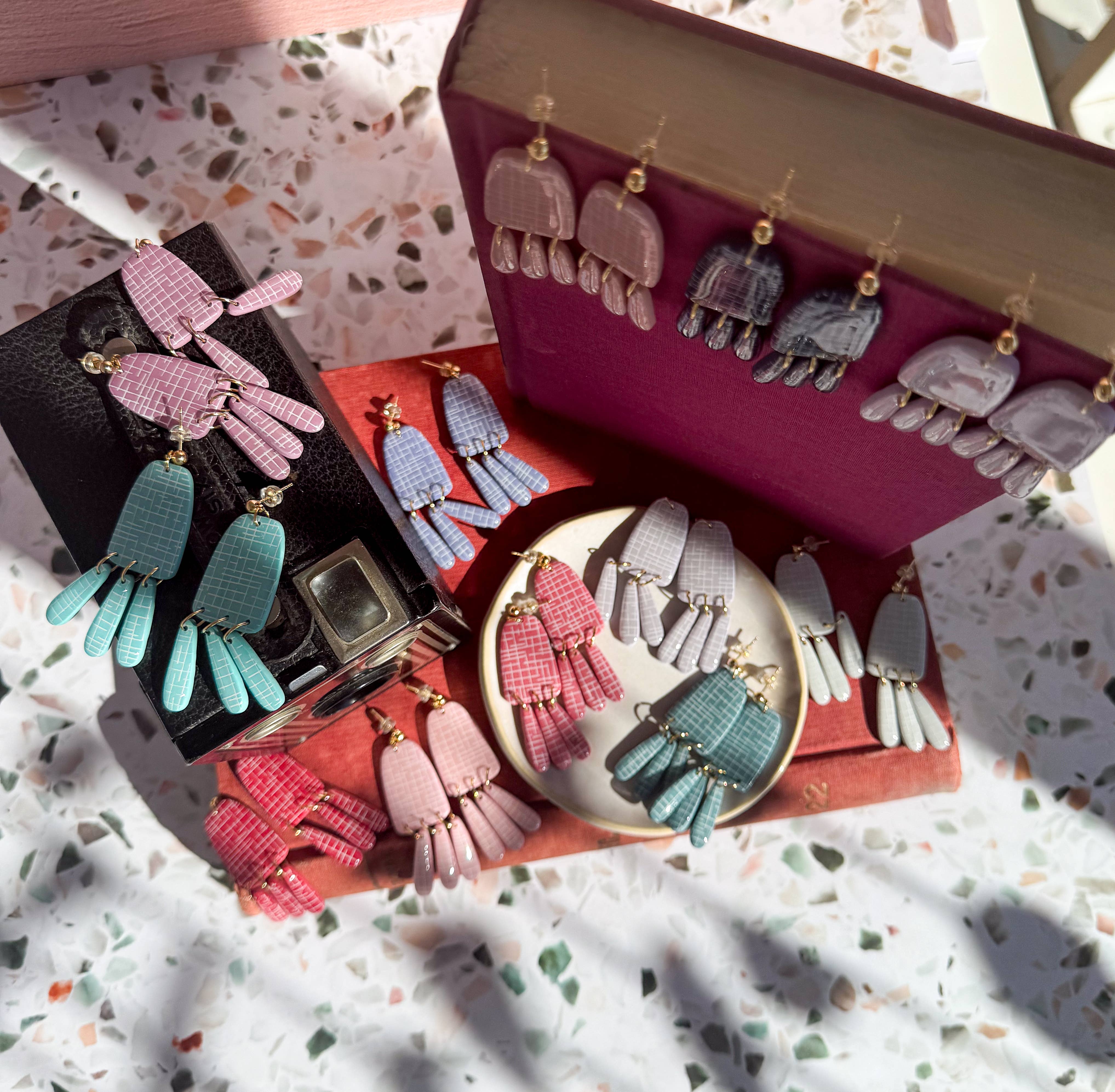 Marbled Cherish Drop Earrings-Polymer Clay