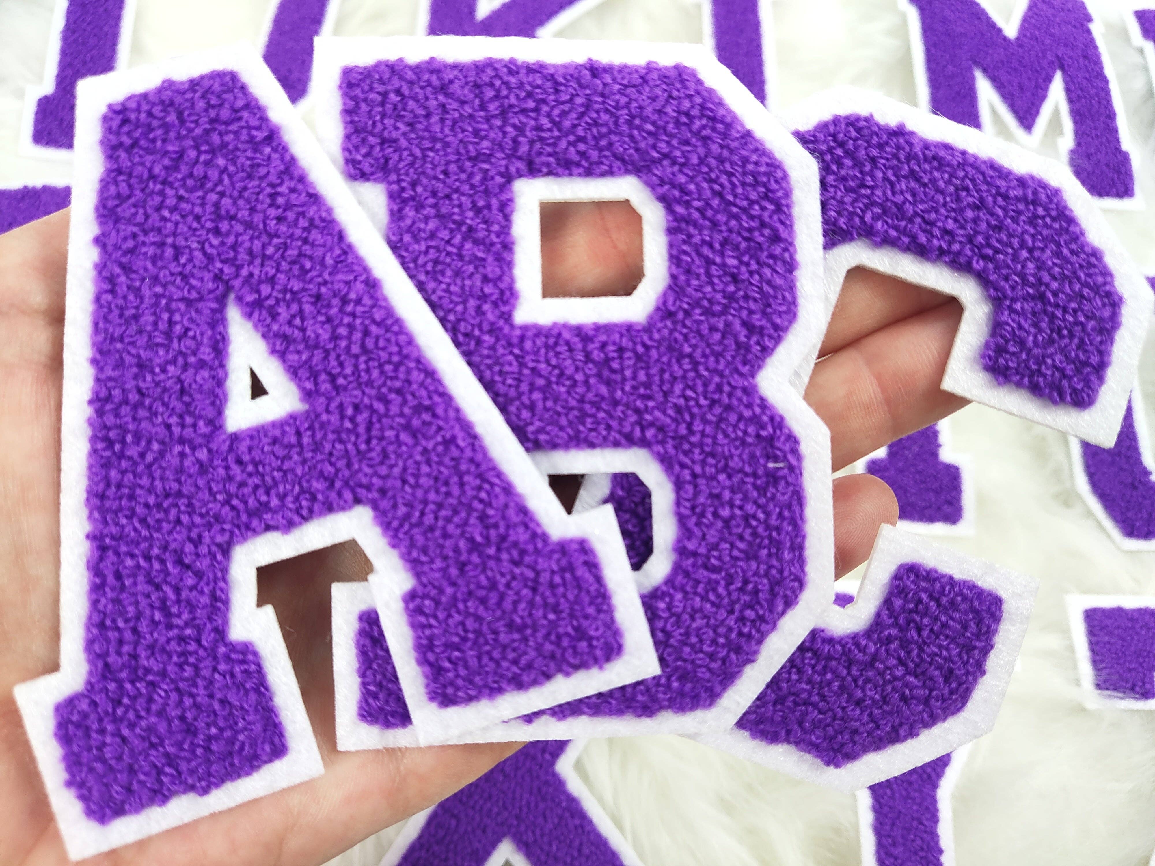 These Chenille Letter Patches can be applied to denim, 100% cotton, and polyester/cotton blends on light and dark colored garments. They can be applied to robes, hats, bags, t-shirts, sweatshirts and so much more! Size (Approx) : 3.75in Tall and Width varies by letter Backing: Iron On THESE PARTICULAR LETTER PATCHES CANNOT BE APPLIED TO ANY TYPE OF SURFACE THAT WOULD MELT WHEN HIGH HEAT IS APPLIED TO IT. The letter patches can be applied with an iron or a heat press. Iron Application Instructions: When applying the letter patches with an iron, set your iron to high heat. Using a fresh adhesive, lint-roll the surface of your garment where you will be applying your letter patches prior to prepressing to remove any lint.