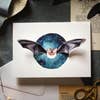 This intricately detailed greeting card features an original watercolour bat illustration with delicate 3D pop out wings that almost ‘float’ above the card. Printed onto luxury FSC card stock & accompanied by a high quality envelope. A6 in size (104 x 148mm) Proudly designed and sustainably made in England. All cards are blank inside for your own message. Packaged in either a biodegradable cello bag or a card clasp.