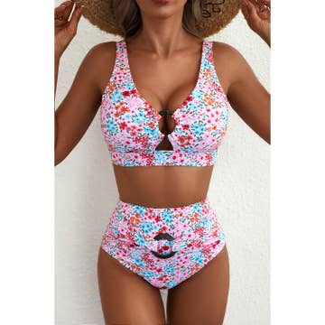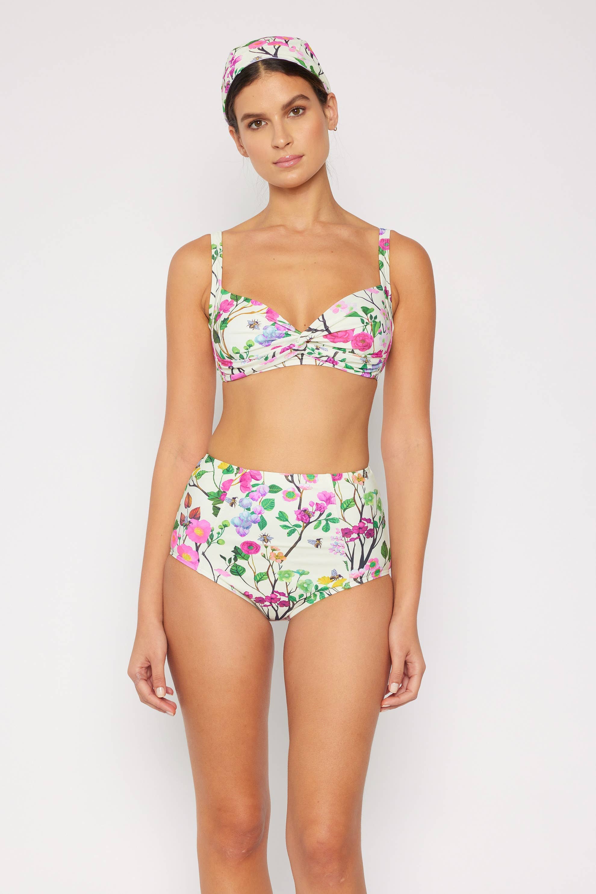 Vintage style knotted front bikini top with adjustable straps, high waisted bottom with great coverage Removable bra padding QUICK-DRYING: Dries in a flash UPF 50+ (Excellent Protection) ALL-AROUND STRETCH: Provides ultimate comfort and mobility Great for water sports Machine wash cold and line dry