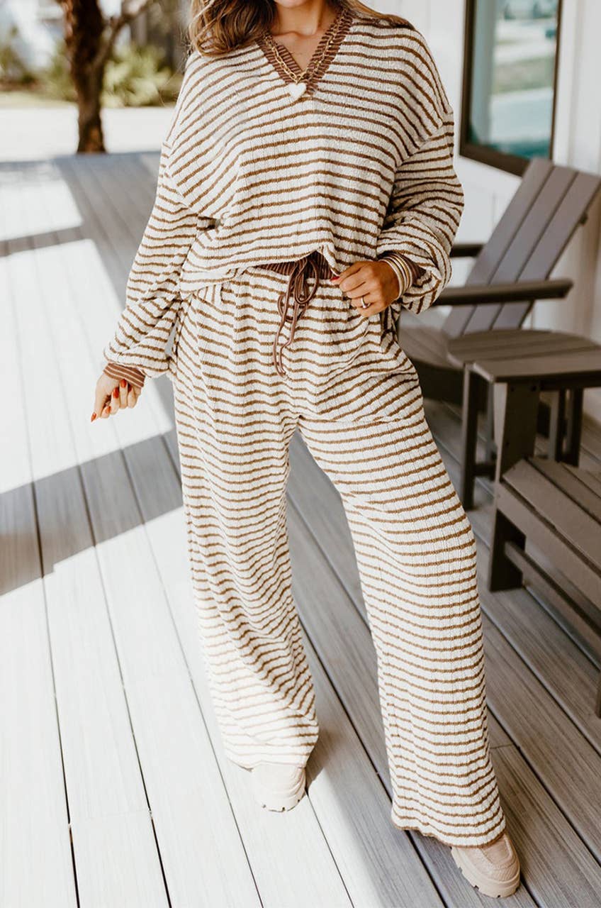 LAS Leopard Striped Edge Shirt and Pants Pajama Set (S-4X)
