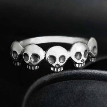 Looking for the perfect accessory to show off you edgy side through your style? Well, look no further! This dark alternative piece features a dark black stainless steel band with a spinner center that is adorned with white skulls along the surface The black and white skulls give it a trendy look, while the spinner design is great for fidgety folks who like to play with their rings. Whether you're wearing it as a fashion statement or using it as a stress reliever, this ring is sure to get attention! • Strong, durable, and don't easily break. • 316L Surgical Grade Stainless Steel will never fade, tarnish or turn skin green, even when worn in the ocean or pool. • Hypoallergenic, so don't worry about any breakouts or rashes! • A great alternative to .925 Sterling Silver. Approx. Weight: 6 grams Available Sizes: 5, 6, 7, 8, 9, 10, 11, 12, 13, 14, 15, 16