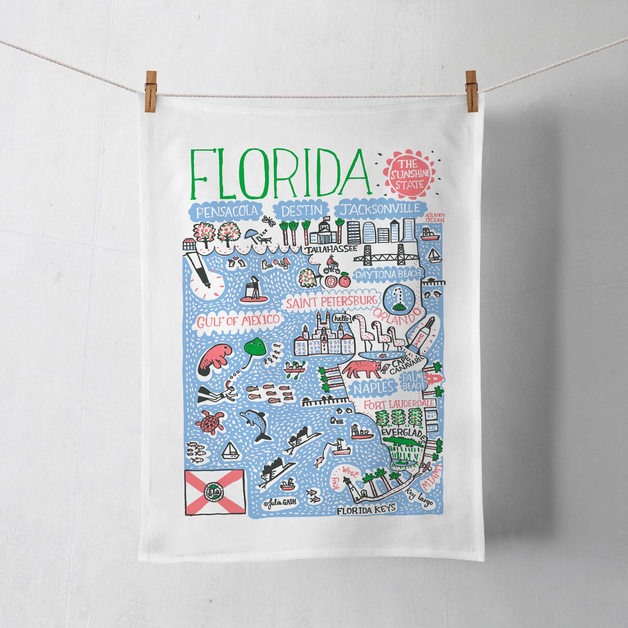 Coast & Cotton's soft, absorbent towels are made from 100% GOTS certified organic cotton. Each piece is lovingly designed, printed, & wrapped in Auburn, AL. Towel Specifications: + Organic cotton tea towel measuring 20 x 26 inches, printed all over + Original, hand-drawn design printed with colorfast, water based dyes + Wrapped with coordinating ribbon & a recycled paper tag