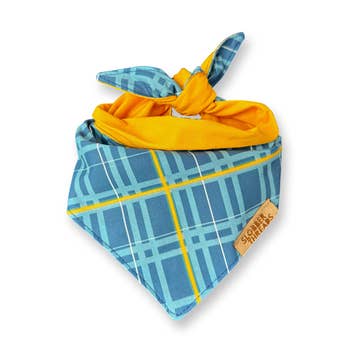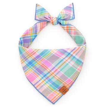 The Lakeside Bandana is made from our signature cotton madras print. Cotton printed fabric. Small size: 16" square & measures 21" across / fits up to a 15" neck. Large size: 21" square & measures 29" across / fits up to a 23" neck.