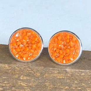 Orange Bikes Fabric Button Earrings