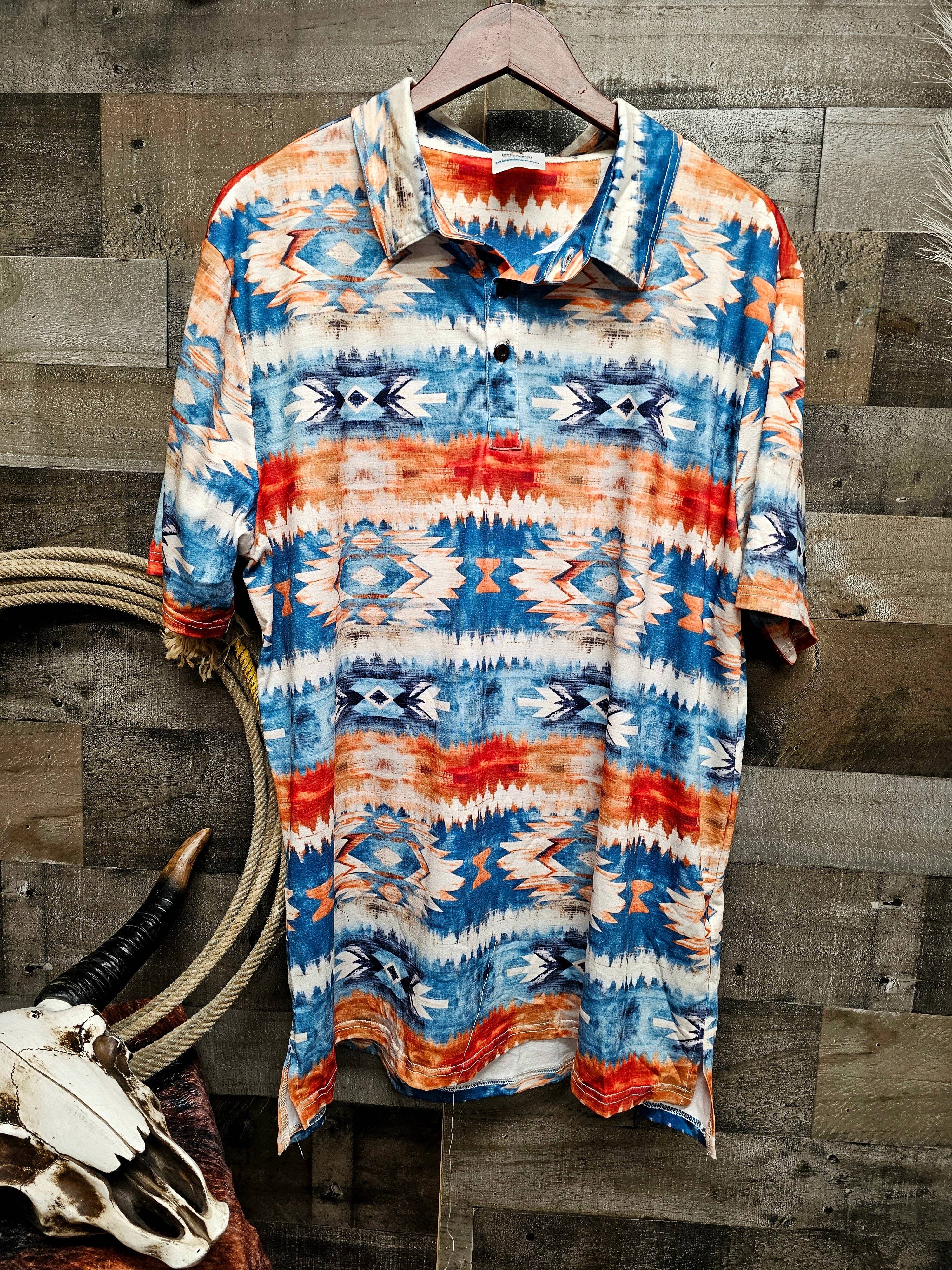 Our custom designed arena shirts are absolutely stunning and you won't find them anywhere else! Boast some serious style in this Unisex Western Button Up Shirt . Be rodeo-ready! Made from 100% polyester, lightweight and comfortable. Fabric has a slight sheen. This classic shirt provides a button-up style with long sleeves and chest pocket. Two buttons are included on each sleeve cuff to adjust a comfortable fit. PLEASE ALLOW UP TO 14 BUSINESS DAYS TO RECEIVE YOUR ORDER. Please calculate your size from the measurement chart below. These are a men's or unisex fit but women love them too, especially for the extra arm length and room while riding. Wash in cold, Non-chlorine; Iron on low with cover; Hang to dry