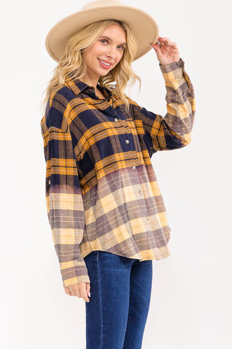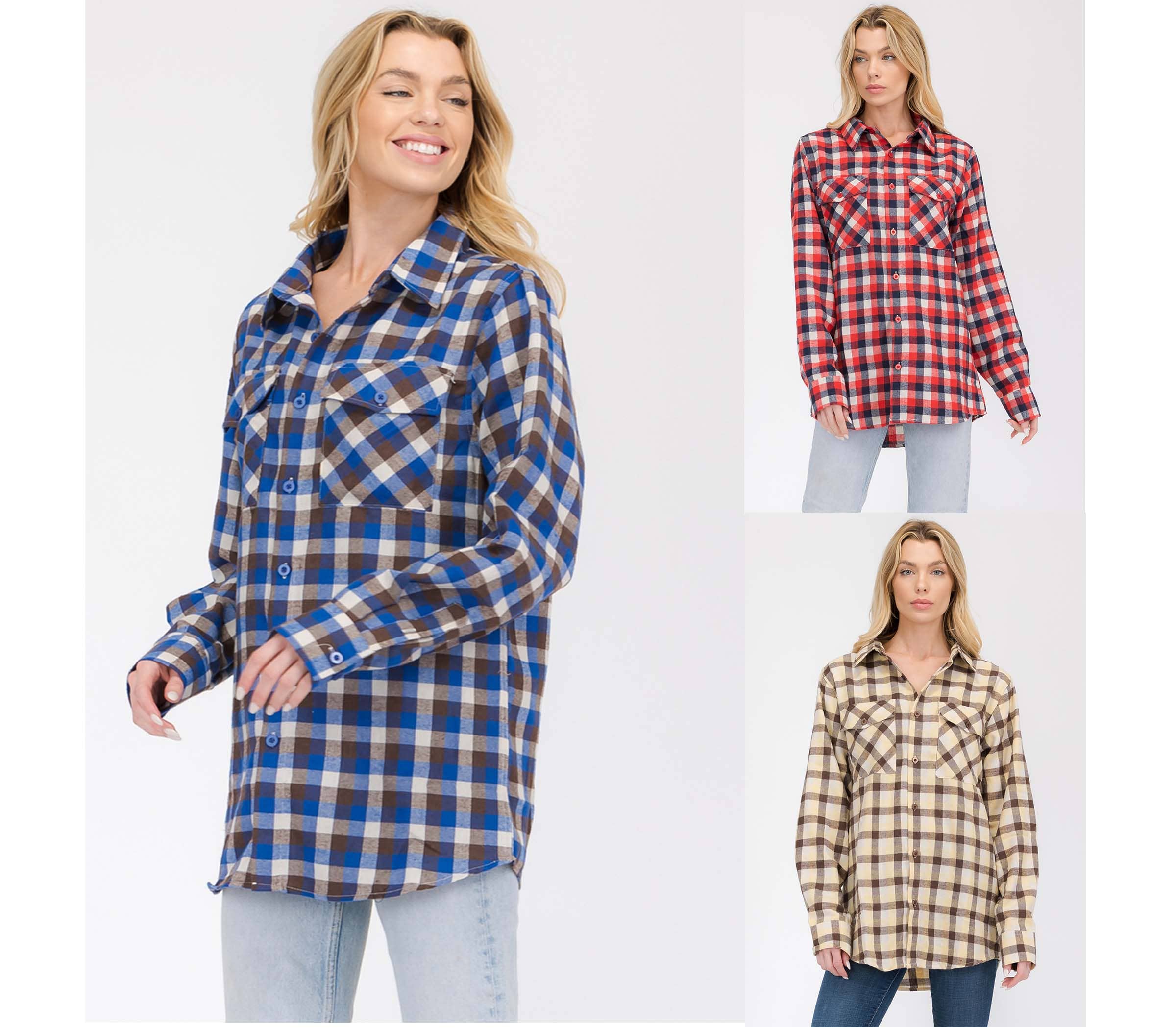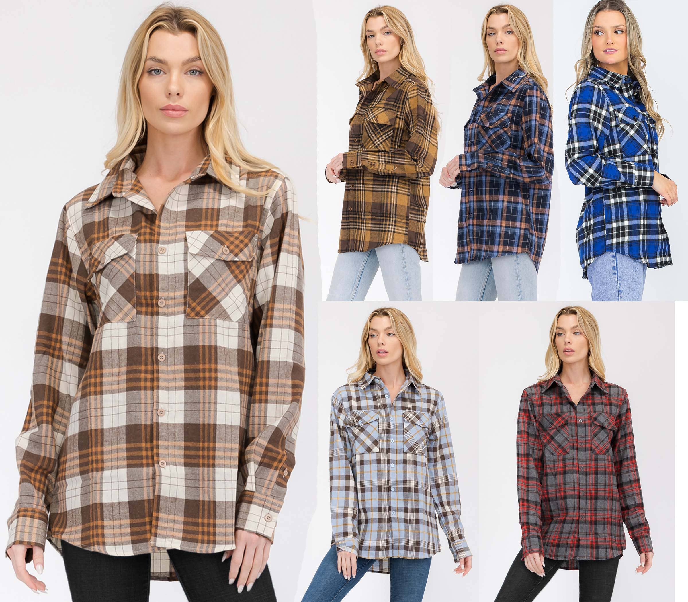 Wholesale FL102 Womens Boyfriend Flannel Checkered Plaid Long Sleeve