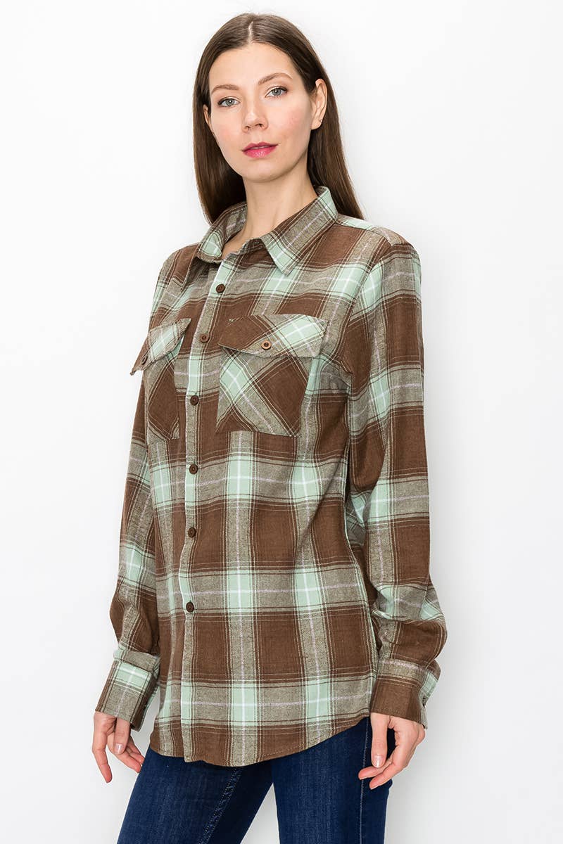 FL102 Womens Boyfriend Flannel Checkered Plaid Long Sleeve