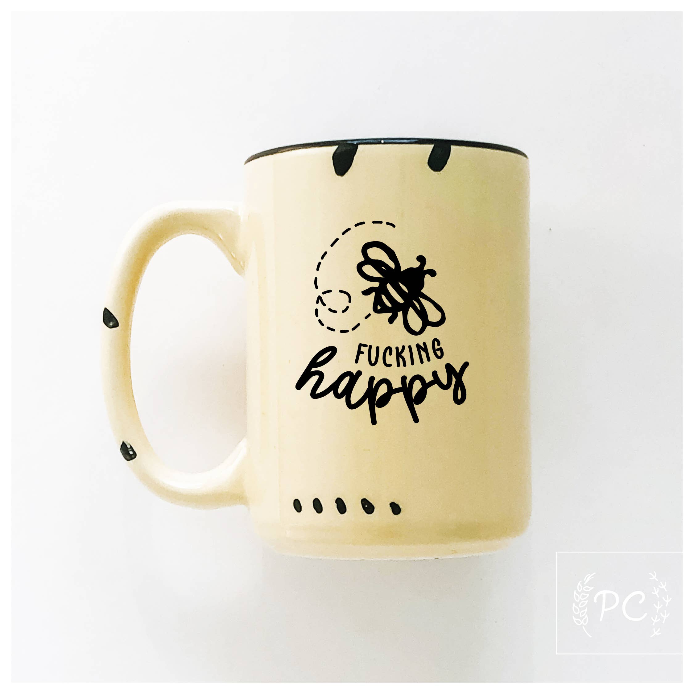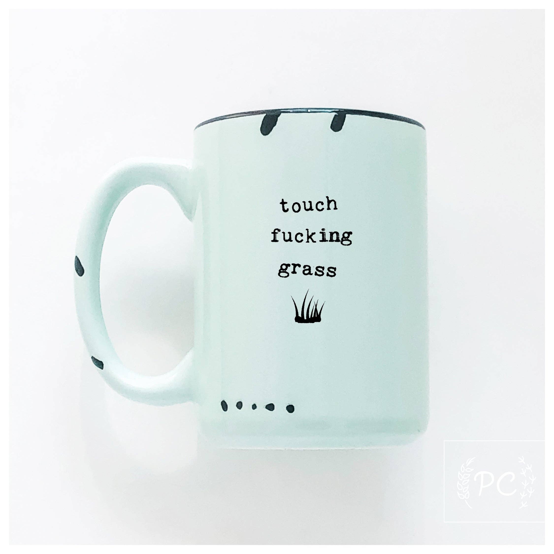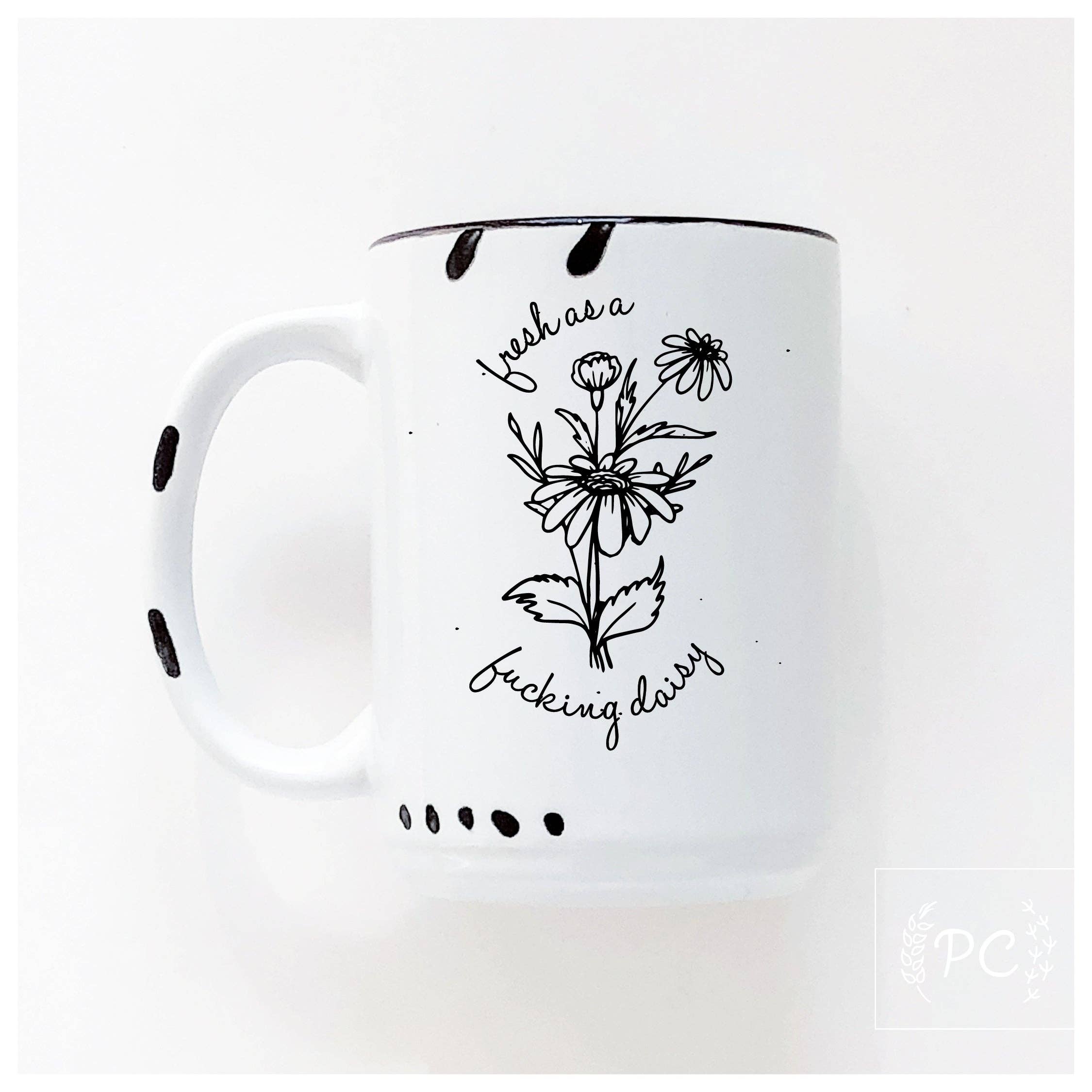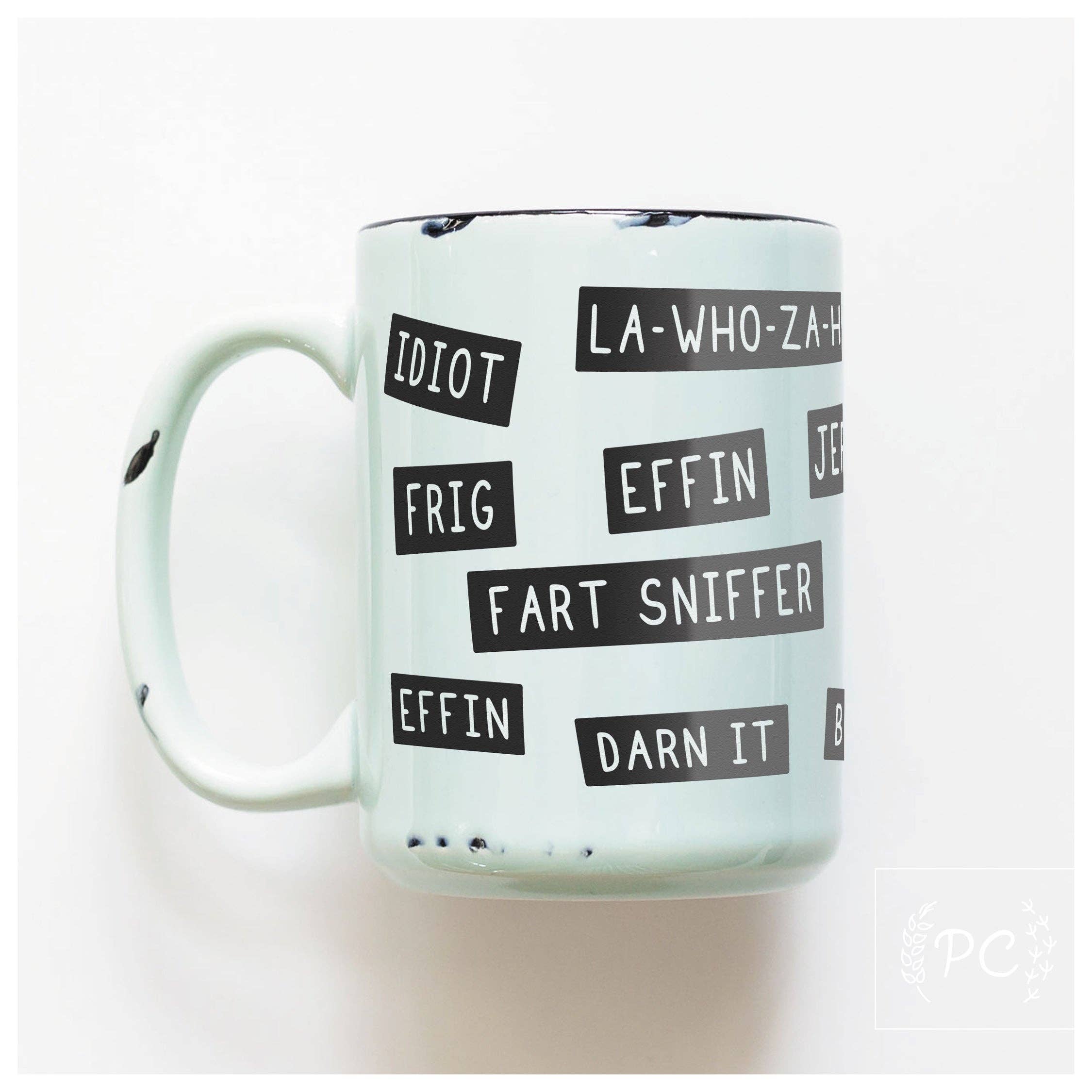 Charming & cheeky mugs by Prairie Chick Prints are the perfect addition to any mug collection, great for gift giving or heck just keep it for yourself to enjoy your morning cuppa. So what are you waiting for? Made to order. Individually heat pressed on a ceramic mug with a charming enamel rustic aesthetic. Best ordered in groups of 12 for shipping. A box holds 36. – printed on both sides so all can enjoy – large & wonderful 15 oz. size – hand wash suggested (dishwasher-safe top rack, avoid extreme heat & sanitize cycles) – microwave safe because reheating happens ;) – featuring 7 pastel colours as well as it’s chippy hand done markings, each one is unique – designed & printed in my home studio, Sherwood Park, Alberta Rustic sublimation mug design © Crystal Derouin Design Inc./Prairie Chick Prints. Cheeky mugs, funny mugs, chippy mugs, farmhouse mug, vintage mugs, rustic mug, retro, enamel, friend gift, morning coffee, tea mug, novelty gifts, rude mugs, pg mugs, sassy, idiot, darn