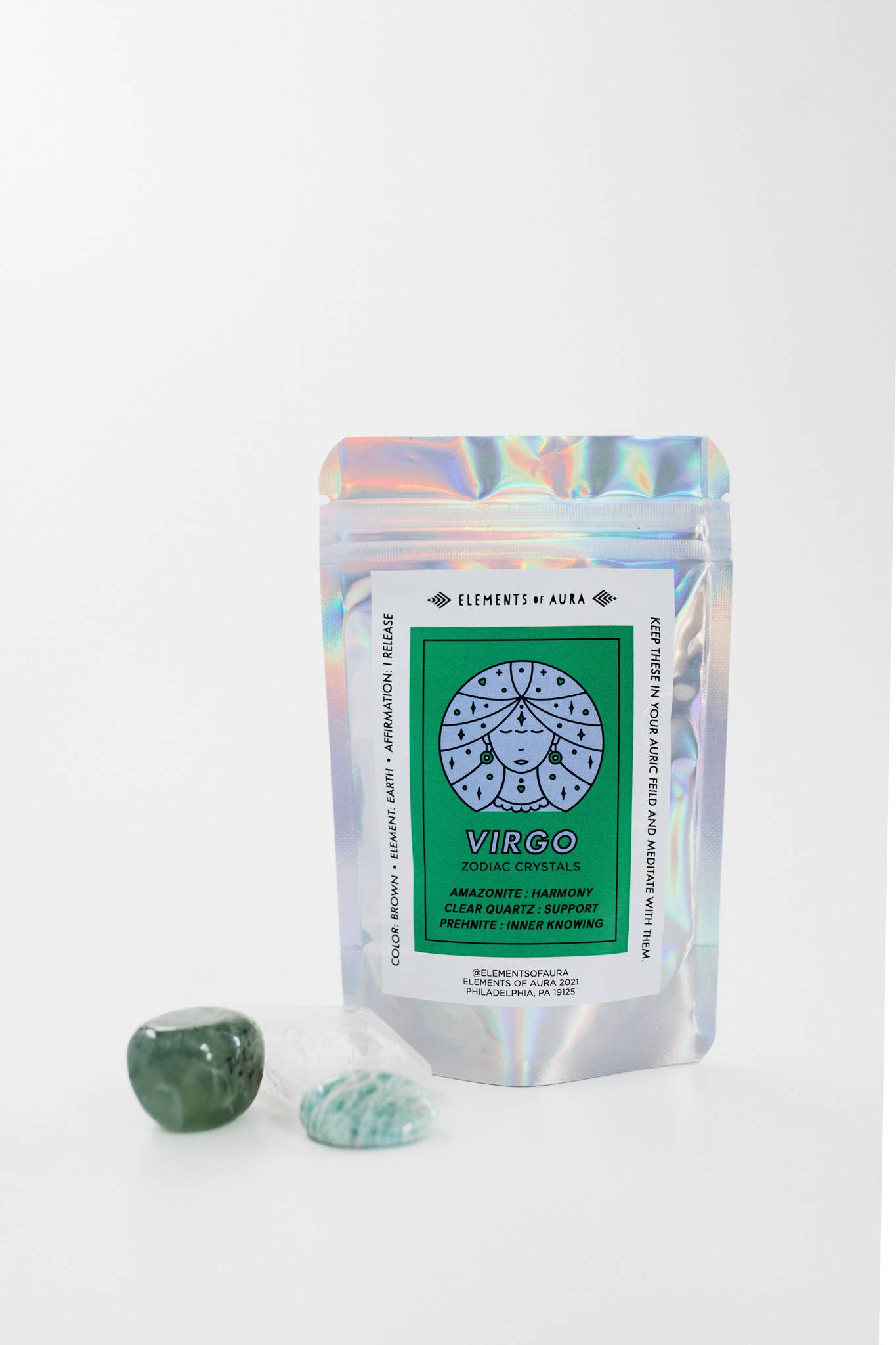 The *perfect starter kit for the crystal curious. A trifecta of curated crystals to energetically support + bring balance to their zodiac sign based on its unique attributes. Complete with personalized affirmation cards! Each 2 oz set, will vary in size, shape and combination of crystals. Please find our listing called "Zodiac Crystal Sets" for easier purchasing of equal quantities. SAMPLE: CAPRICORN STONES Moonstone - Stone of Inner Growth: said to soothe stress, enhance intuition, and balance male-female energies. Increases emotional strength and connection to the divine feminine. Prehnite - Stone of Inner Peace: calms restlessness, nervousness and worry, promoting an overall calm and joy that helps one to stay in the present moment. Smoky Quartz- Stone of Grounding: Connects to Earth energy + clears negativity from the mind, body and surrounding space. Encourages self acceptance.