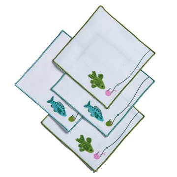 Set of 4 Organic Cotton Sardine Napkins in Mint - Fish Print