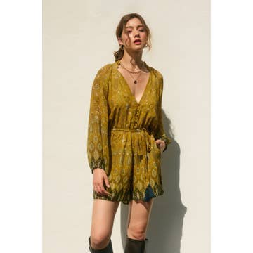 Wholesale Boho Paisley Off-Shoulder Tie-Waist Romper