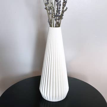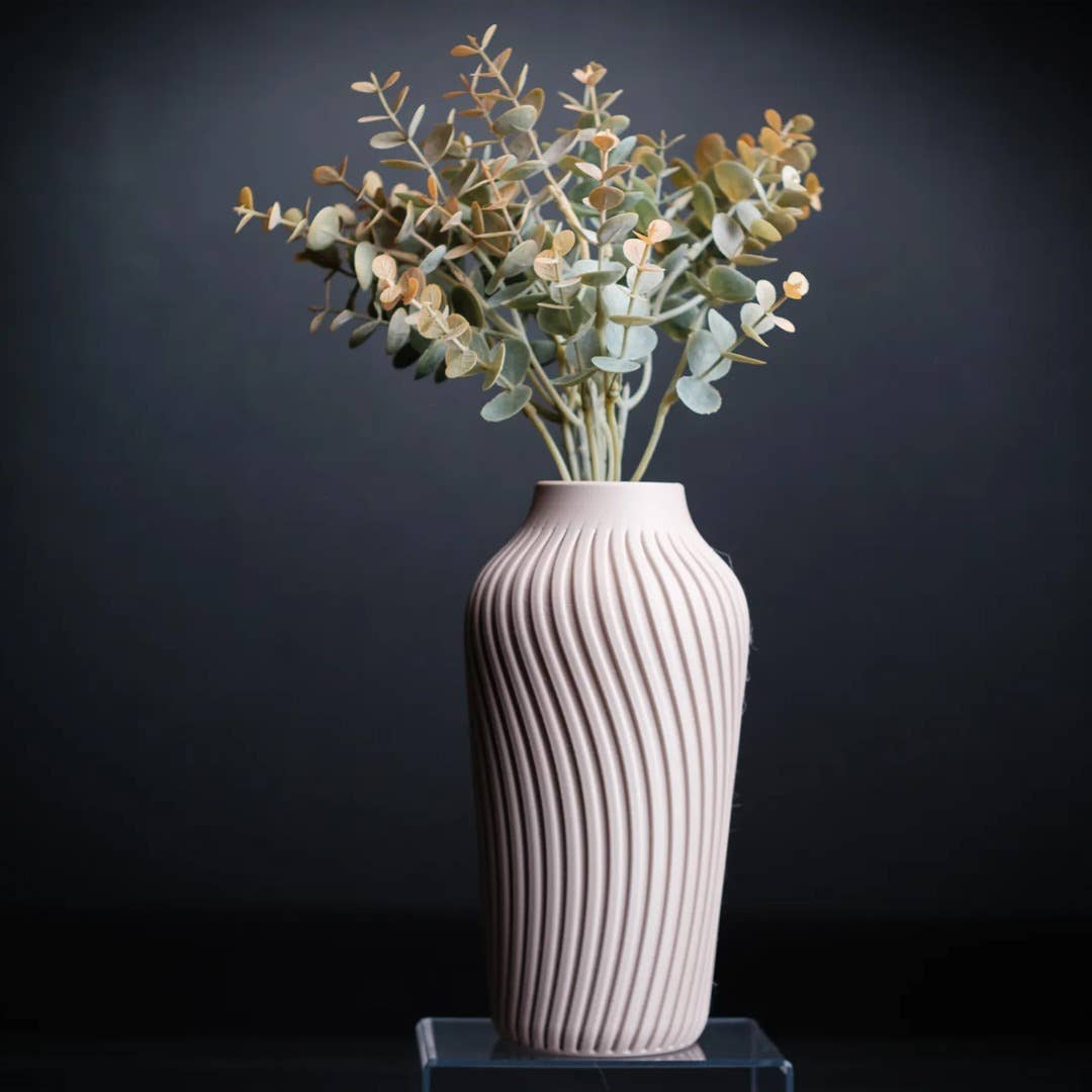 Our One In a Kind TIMBER Vase. Inspired by nature's rustic charm and contemporary design, it blends earthy warmth and modern aesthetics, making it a perfect centerpiece for your home or office. Crafted from recycled plant-based plastics and reclaimed wood, it's a symbol of sustainability. This versatile, sturdy vase is ideal for fresh flowers or dried botanicals, combining style and function in one. Embrace nature's enchantment with the TIMBER Vase, where modern design meets natural allure. SIZES Large Height: 10 inches Width: 5.5 inches Depth: 5.5 inches Medium Height: 8.0 inches Width: 4.5 inches Depth: 4.5 inches Bud Vase Height: 6.0 inches Width: 3.5 inches Depth: 3.5 inches If you would like a custom size or color, please contact us.