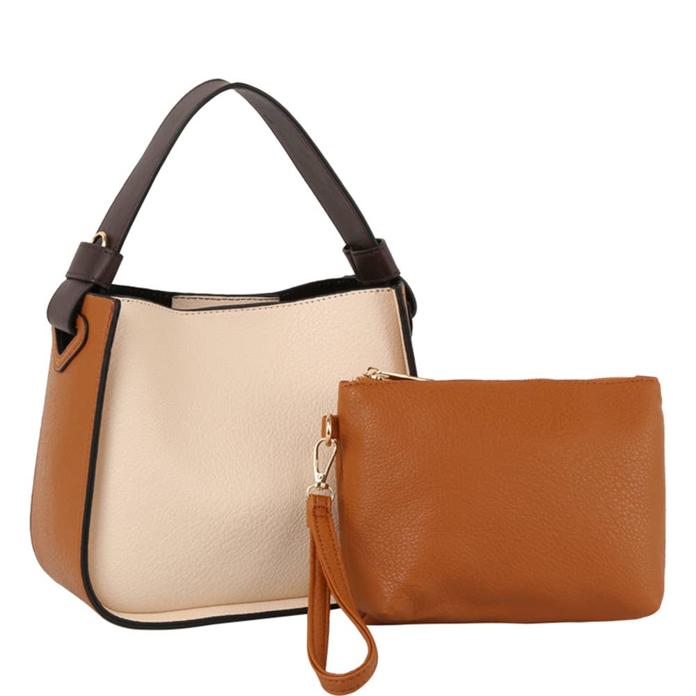 Ladies Fashion Two Tone Satchel Tote Handbag