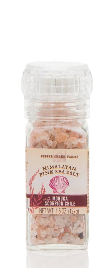 Himalayan Pink Sea Salt with our Smoked Ghost Chili Peppers in our Reusable Grinder! Will warm your soul & body with a smokey flavor!