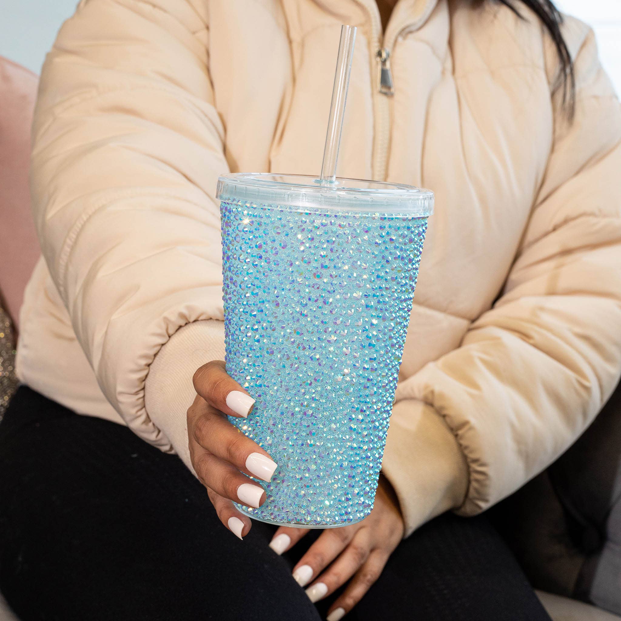 The Strass Tumbler from Sparkles Home is the ultimate accessory for the glamorous body on the go! These tumblers are a game-changer in the world of bling; glass rhinestones are bonded into the adhesive at a scorching 400 degrees for unbeatable durability. We only use genuine glass rhinestones in a rainbow of dazzling colors to ensure the ultimate shine and prism effect. The mixed size stone pattern on these tumblers creates an explosion of sparkle that will turn heads wherever you go. Made with BPA-free acrylic, the double-walled design keeps cold drinks chilled for up to 8 hours and hot drinks hot for up to 3 hours. Plus, our Strass Tumblers are incredibly easy to clean - hand wash with cool water, using a gentle brush to clean the exterior and soap and water for interior, then place in a drying rack.