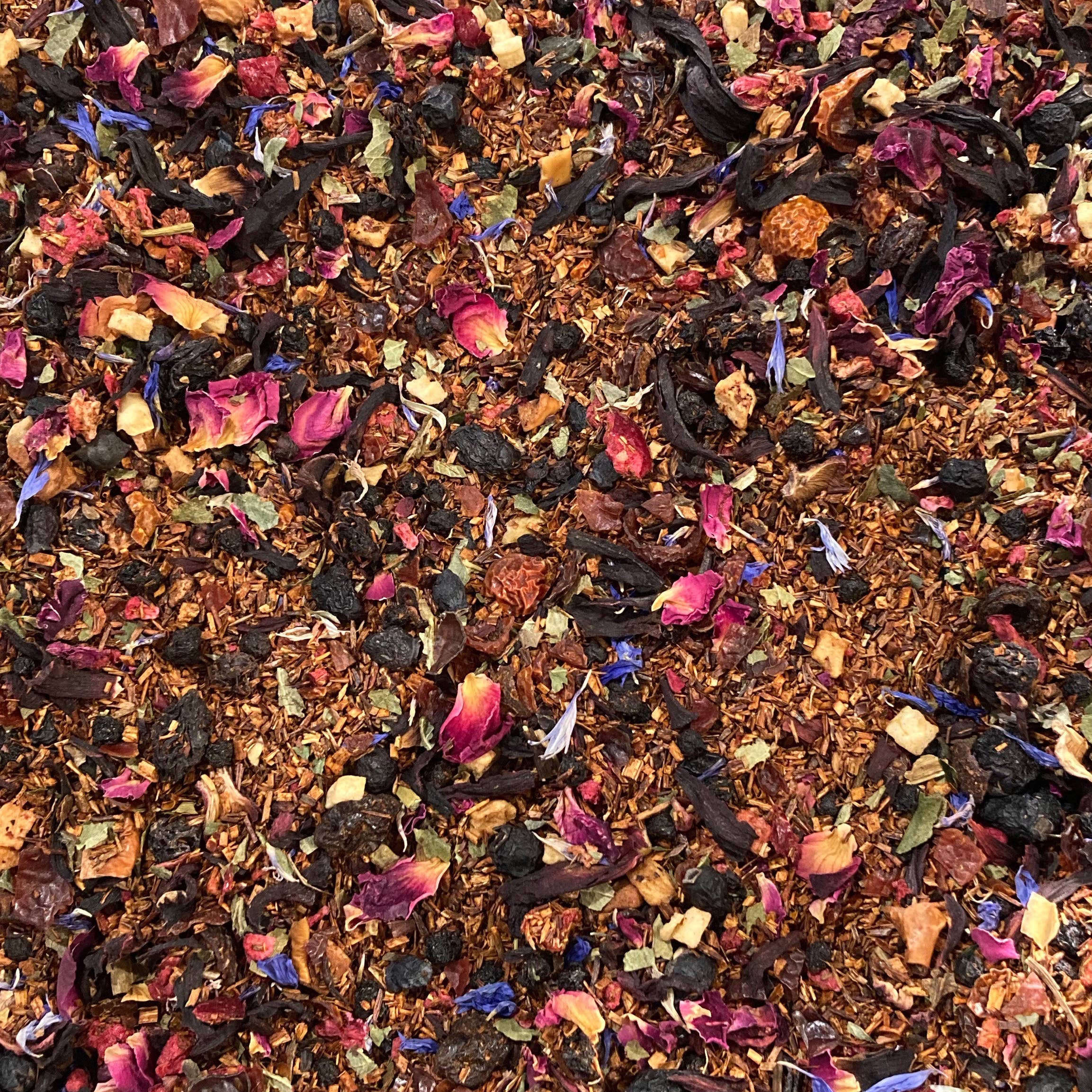 SKU: PB-0432 Made in United States Shelf life: 12–24 months Storage: Shelf-stable Ingredients: Green Rooibos, Peach Bits, Cranberry Pieces, Strawberry, Cornflowers, Calendula Petals, White Chocolate Bits, Natural And Artificial Flavor