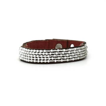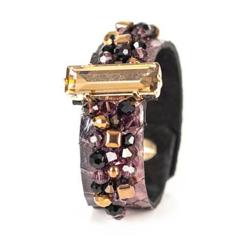 - 100% handmade by fairly paid artisans in our partner worker-owned co-op in Tanzania! - Crafted from free-range, natural leather and lined with soft suede. - Durable and adjustable. - Fastened by a button stud closure with three adjustable lengths. - Adjustable between 7"-8" in length - Three widths available in all styles: Small(.5 inch), medium (1 inch), large(1.5 inches). - Items are all handmade, so there is some variation in leather texture/color. Each cuff comes with a story card with artisan photos and information. A free wooden cuff rack is included with orders of 6 cuff collections or $400 of cuffs!
