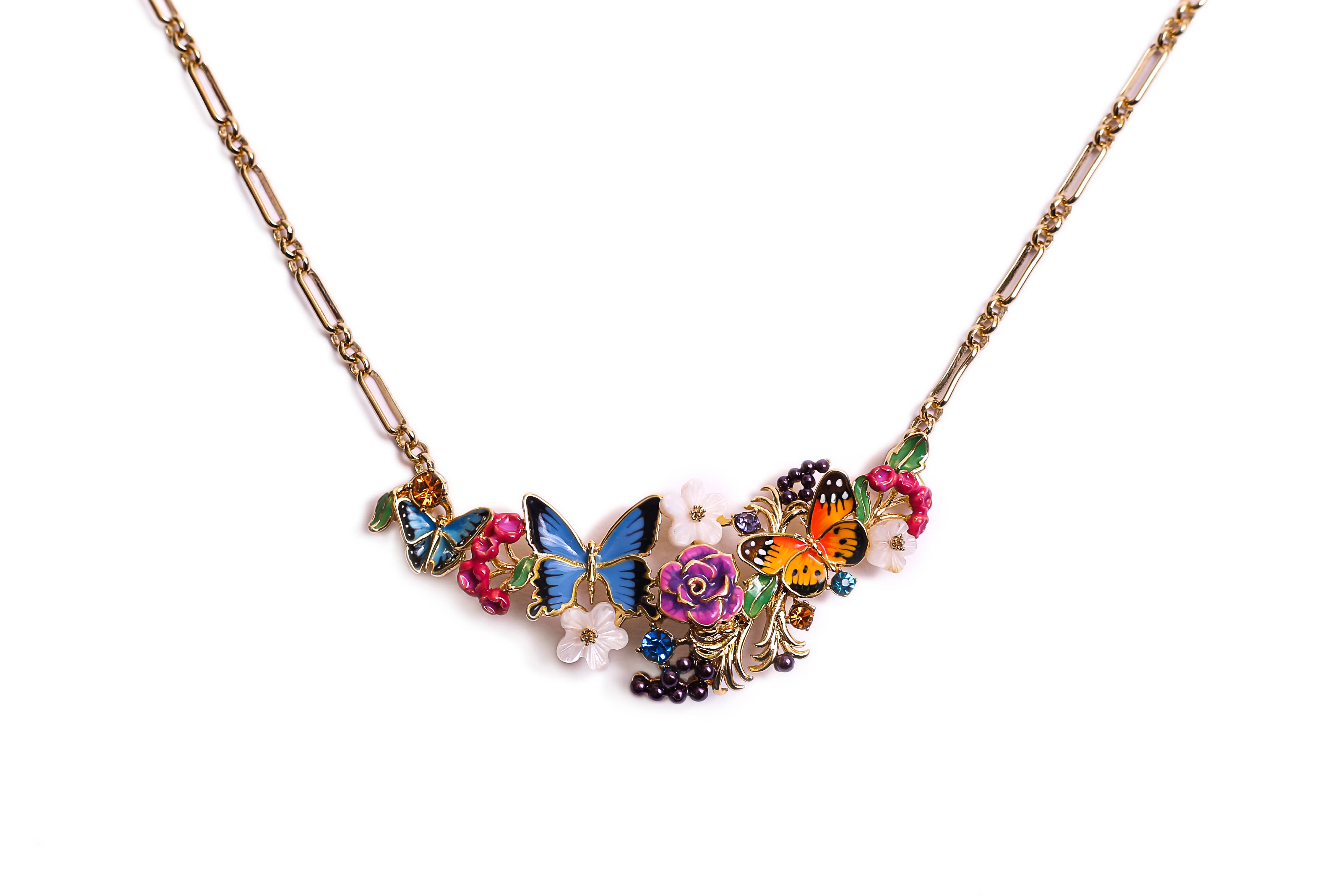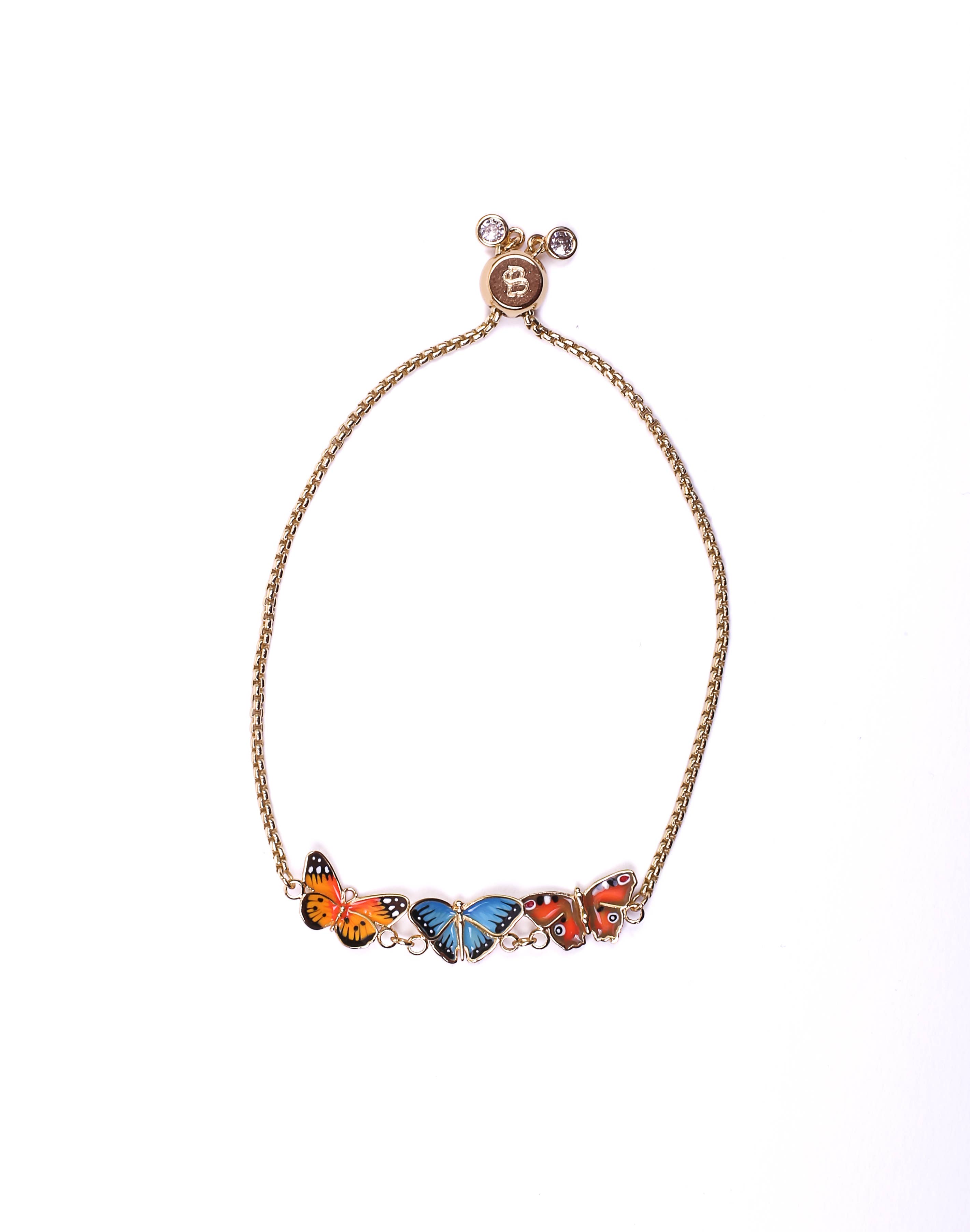 Butterfly Drop Earrings - Cascading hand painted butterflies create these enchanting drop earrings, paired with an eye catching crystal stud set in a 18ct gold plate. "