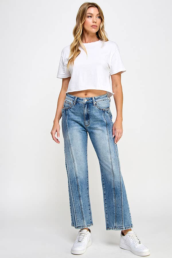 P1371W-MD HIGH RISE STRETCH SLIM WIDE LEG W/ DESTROYED HEM