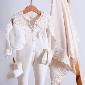 4 Piece Boxed Pink Knit Layette Set