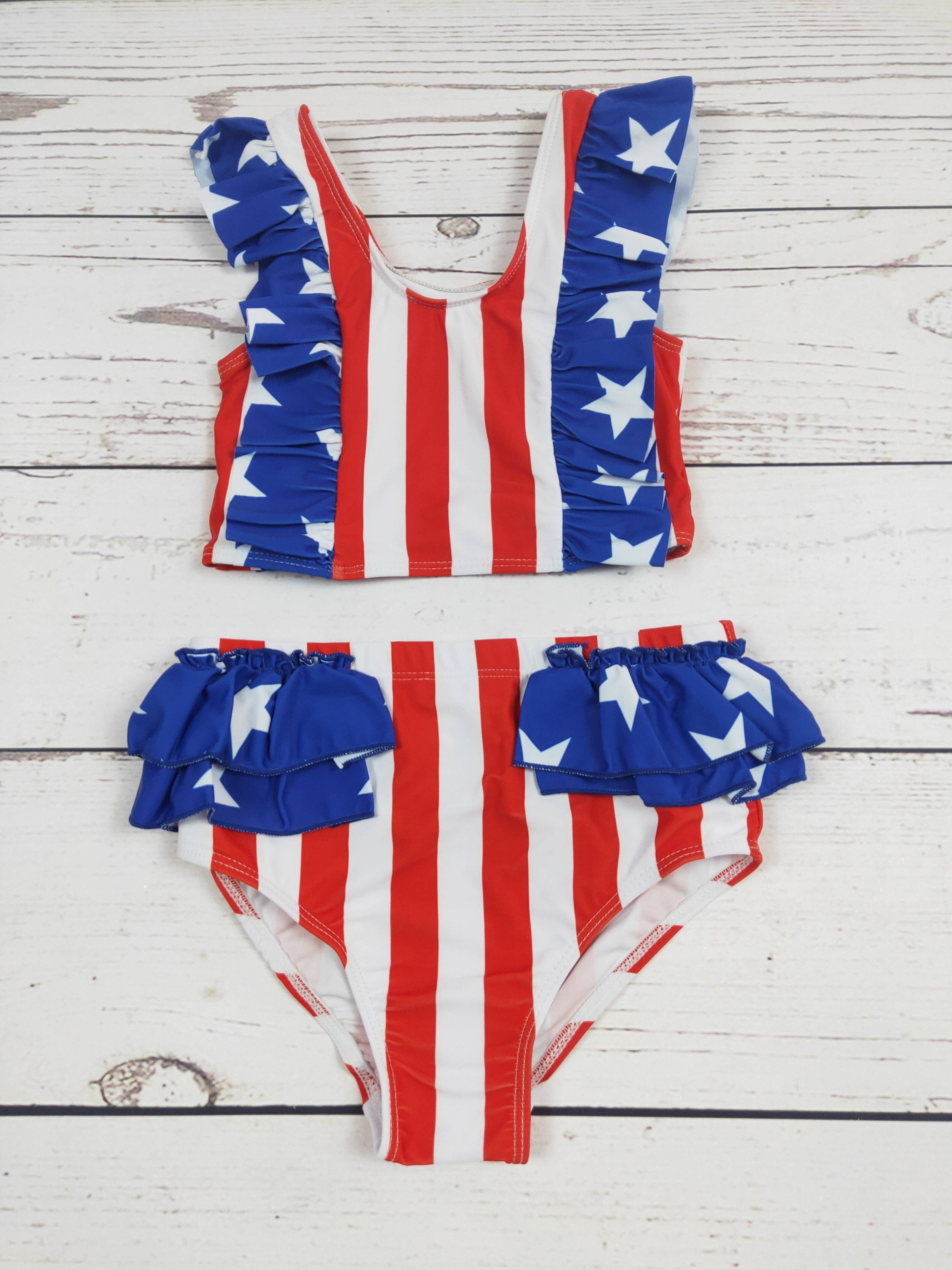 Kids Stripes July Fourth Denim Shorts ETA: 3-5 Days These denim shorts are the perfect addition to your child's summer wardrobe, arriving in only 3-5 days. Made with quality material and a stylish striped design, your child will stay cool and comfortable while showcasing their patriotic spirit on the Fourth of July.