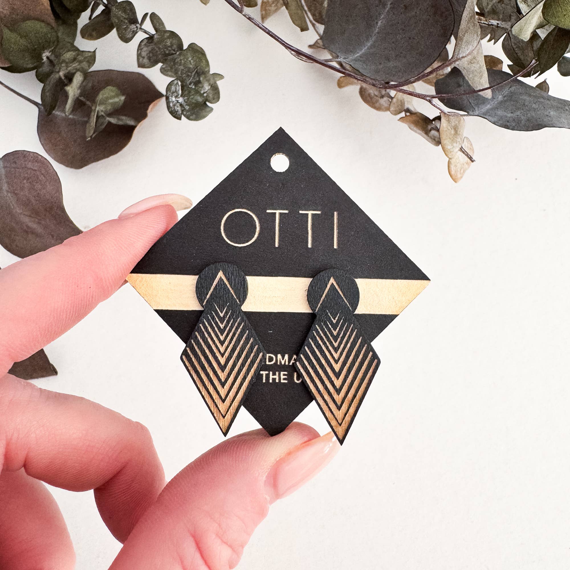Etched in-house from lightweight birch or iridescent acrylic, the Coven designs feature clean architectural lines and a touch of witchy charm. Bold, wearable, and leather-free. The COVEN earrings are the boldest yet most lightweight of the OTTI earrings, making a sharp statement. An original OTTI design. *Works well with tunnels and gauged ears _________________________________________________ Materials: 1/16" birch wood (iridescent design is 1/8" lightweight acrylic) Size: Approximately 2" Note: Extremely lightweight, Lead/nickel safe