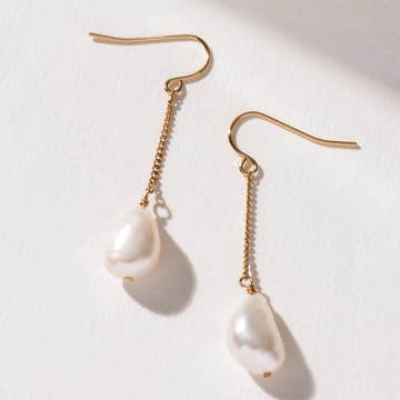 These classic threader earrings are so versatile, they can be dressed up for bridal ware or dressed down with a summer dress or pair of jeans. Beautifully imperfect and full of grace, just like the grit in the oyster. Wear it as a symbol of perseverance and wisdom accumulated through life's ample trials and tribulations. * Triple plated premium brass over 925 sterling silver for superior tarnish resistance * Hypoallergenic and nickel free * 1 3/4" total length * Cultured freshwater baroque pearl * Sustainable, plastic free packaging * Fair trade & handcrafted in India by our artisan partners
