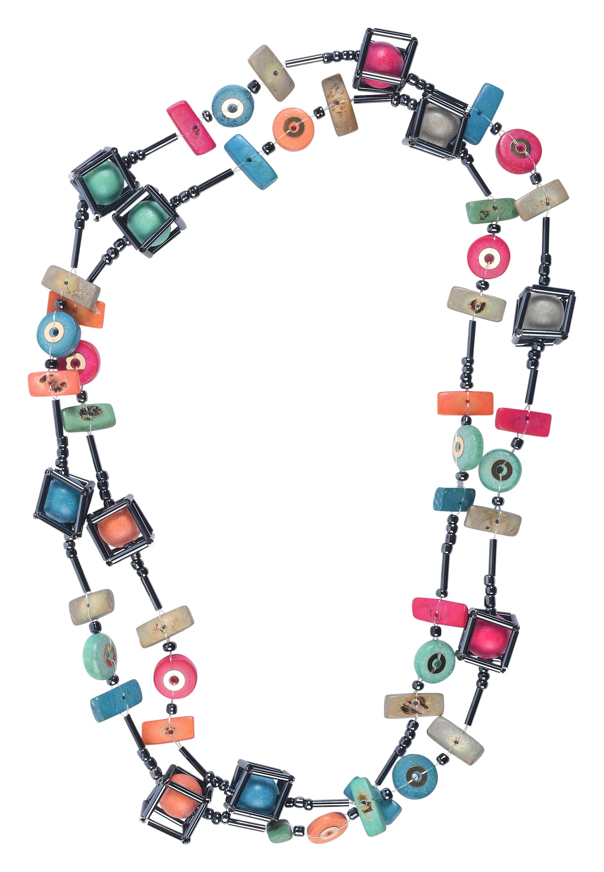 Hand-Woven Iraca-Agave spheres with Açai beads necklace. This necklace can be worn as a long single strand or doubled.