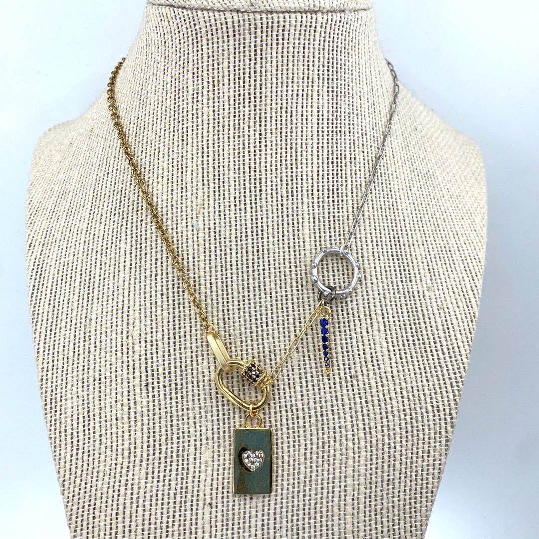 * Double layer small curb chain with accent of arrow chain and tiny gold jump rings * Inner length is 15" outer is 16" * Wear with matching earring CB358-E * * Handmade in our Chicago studio * If you need a different color or length, please contact us bmrjewelry@gmail.com or 612-306-8277