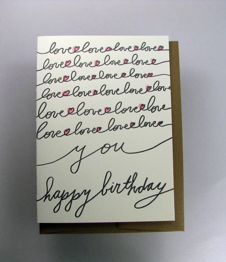 Gorgeous letterpress on paper that's hefty enough to show it off. Clever and unique -- so right up our ordering alley. We love the cards, but only wish we'd paid attention to the size. Since they're larger than most, they didn't properly fit into our displays. Entirely our fault.