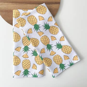 Item: Pineapple Patterned Waffle Kitchen Dish Towel Item Description: Brighten your kitchen with this pineapple patterned waffle kitchen dish towel! Featuring a bold and beautiful pineapple pattern, this jacquard towel is both stylish and essential for any home cook. Make your kitchen unique with the perfect mix of style and function! Our waffle towels are perfect for drying dishes, wiping down counters, and cleaning up spills. They are fast drying, super absorbent, and definitely very cute! The design will be printed on both ends of the front of the towel.  Please note due to the texture in the towels there will be some slight variation in the colors.