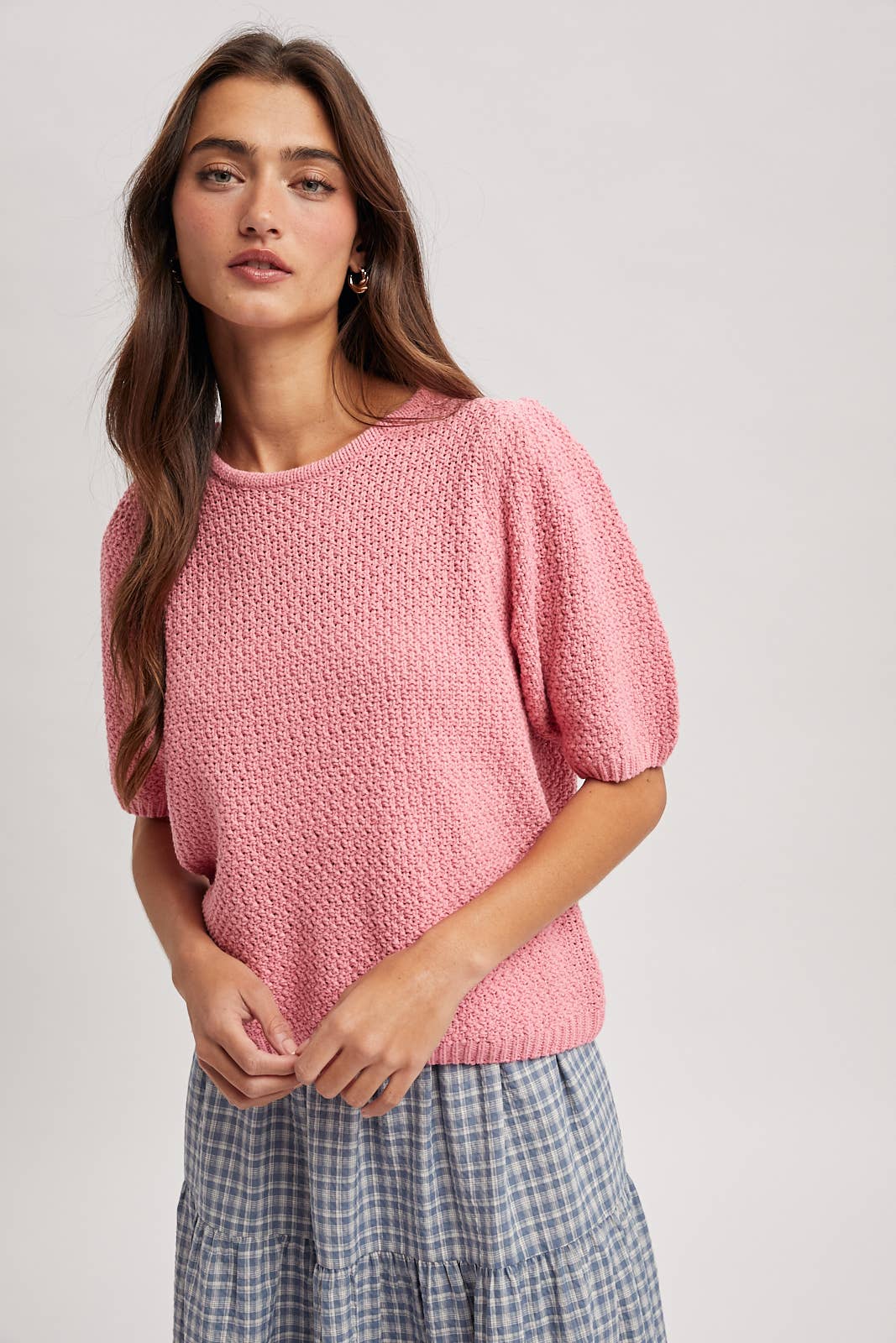 Effortless everyday style, featuring a lightweight textured knit and flattering short sleeves for versatile, all-season wear. - SHORT SLEEVE, 1/2 SLEEVE, ROUND NECK, EASY, COMFY, RELAXED FIT, CASUAL, EVERYDAY, SUMMER, SPRING * Due to lighting and differences in monitors, actual colors may vary slightly from what appears online.