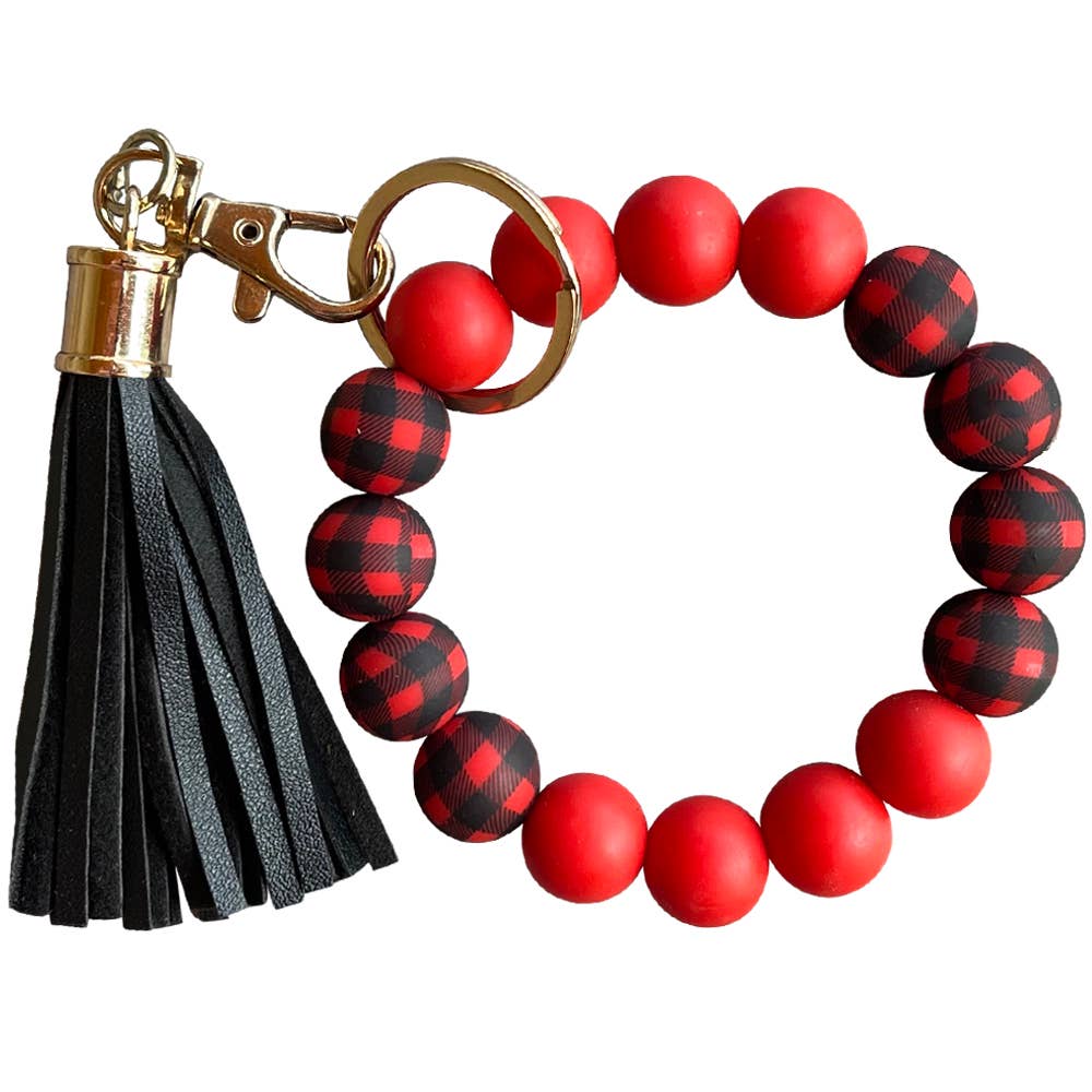 BULK PACK- Silicone Beaded Bracelet Keychain- Buffalo Plaid