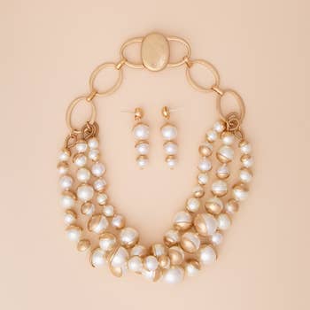Wholesale Head Turner Statement Mix Pearl Layer Necklace Set