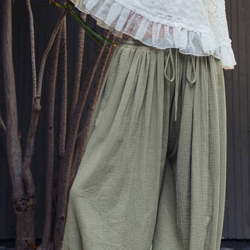 Expertly designed with its couture lines, our airy linen Parachute Pant is a go-to piece during any hot day. This fun piece looks like a skirt but it's a pant and it has pockets! 100% Linen. Made in Italy.