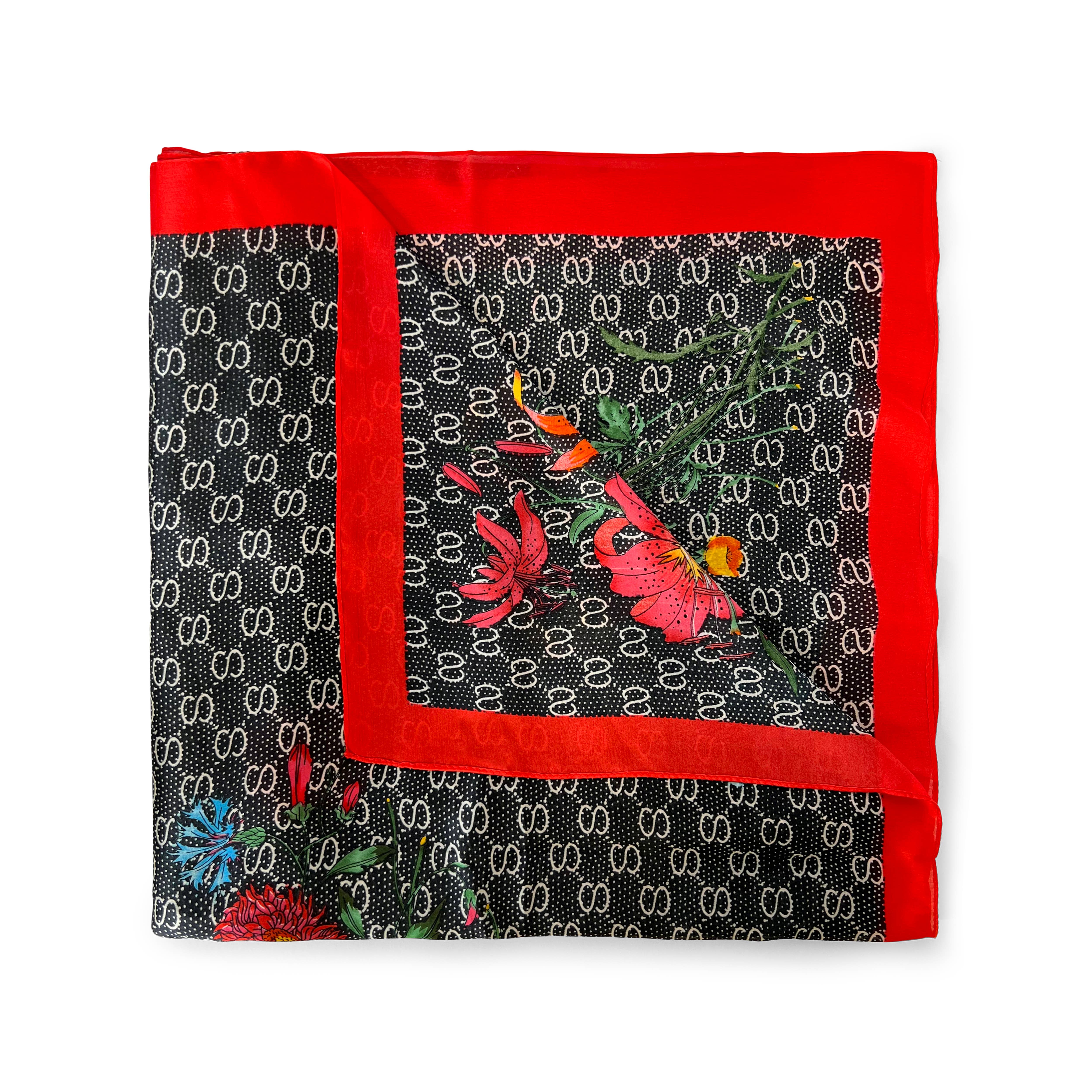 Floral Fashion Scarf - Red and Black