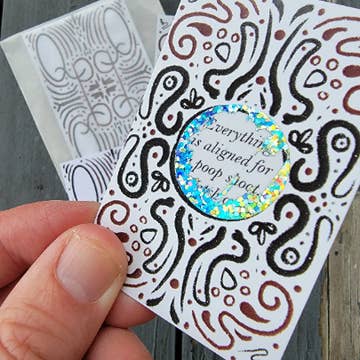 Have some questions that you want answers in the "Yes, No, Maybe" style of a Magic 8-ball? Grab some scratch off fortunes! These measure 2 x 3" and come with a sparkling scratch off sticker. They are printed on cardstock for durability and make for excellent, small bookmarks after use. There are a total of 20 different cheeky responses, so in a pack of 20, you're guaranteed 20 different answers! (Please note that if multiple single cards are purchased or in the 10-pack format, there may be duplicate responses.) For example: One card reads, "Everything is aligned for a poop shoot. Watch out." 10 and 20 Packs will be placed in a clear bag and sealed with a Quarter Press Info Sticker / Label.