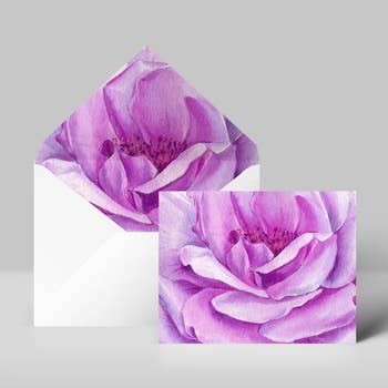 These folded cards are 4.25" x 5.5" (A2), printed on premium arctic white linen textured 100lb cardstock. High quality envelope with Euro flap included. Material: 100lb linen cardstock Size: 4.25" x 5.5" (fits a A2 Envelope)