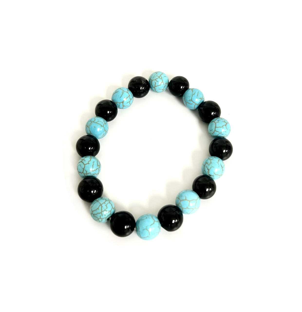 No reviews for Turquoise and Onyx Stone Bead Stretch Bracelet - 10mm yet.