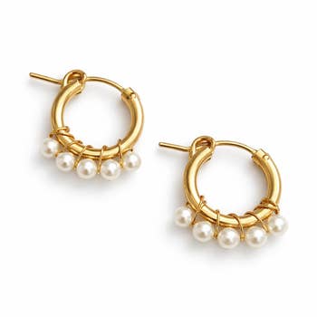 Delicate gold-filled wire balls "Silverthread Drops" with pearls that hang on 3/4"Gold-Filled hoops. The wire ball is free form and dangles from the hoop. Each drop has 6 freshwater pearls that adorn the outside of each ball. Ball is made from gold-filled wire. Hoops are gold filled. Pearls are freshwater pearls.