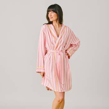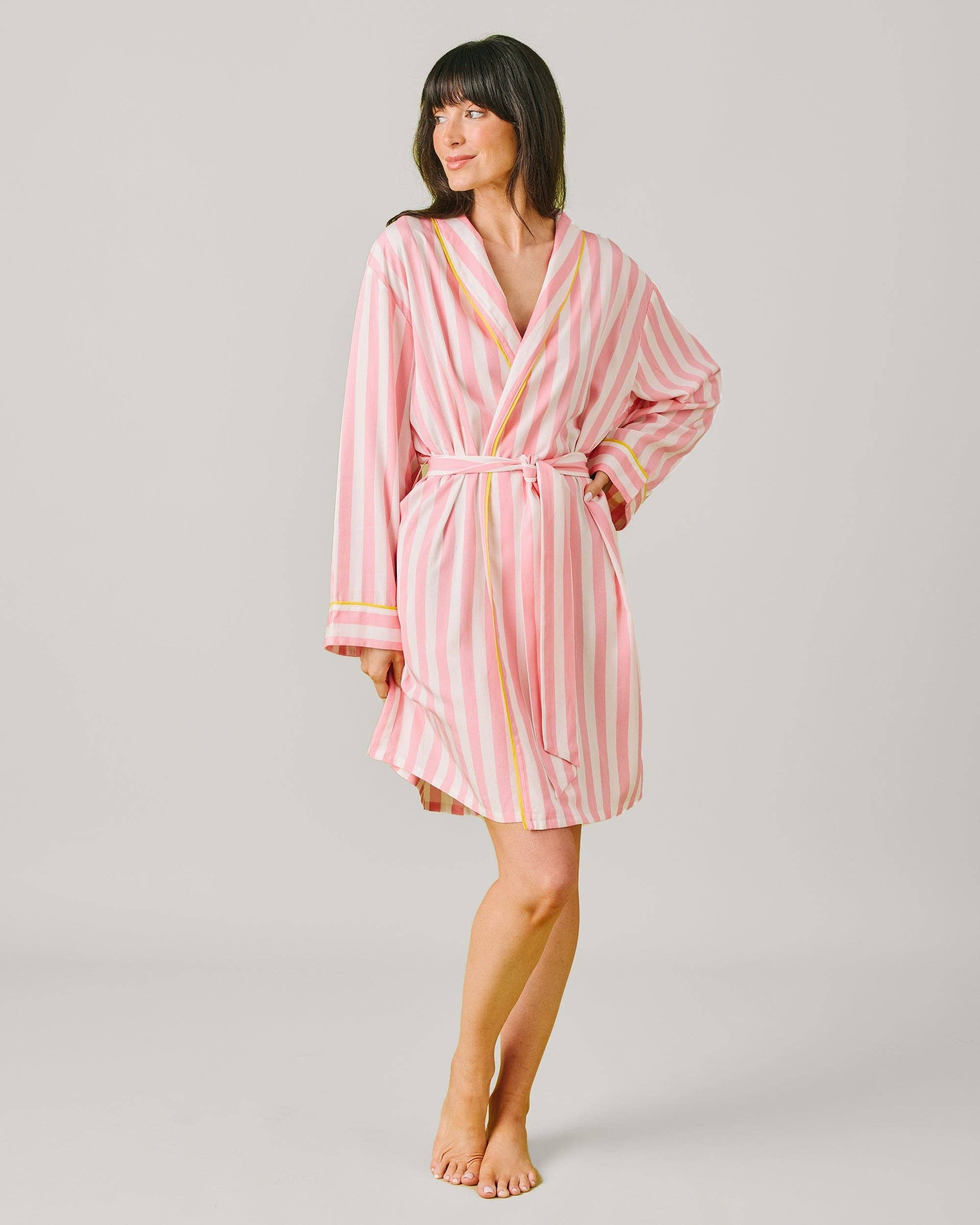 Wholesale Short-Sleeve Buttoned Robe with Belt