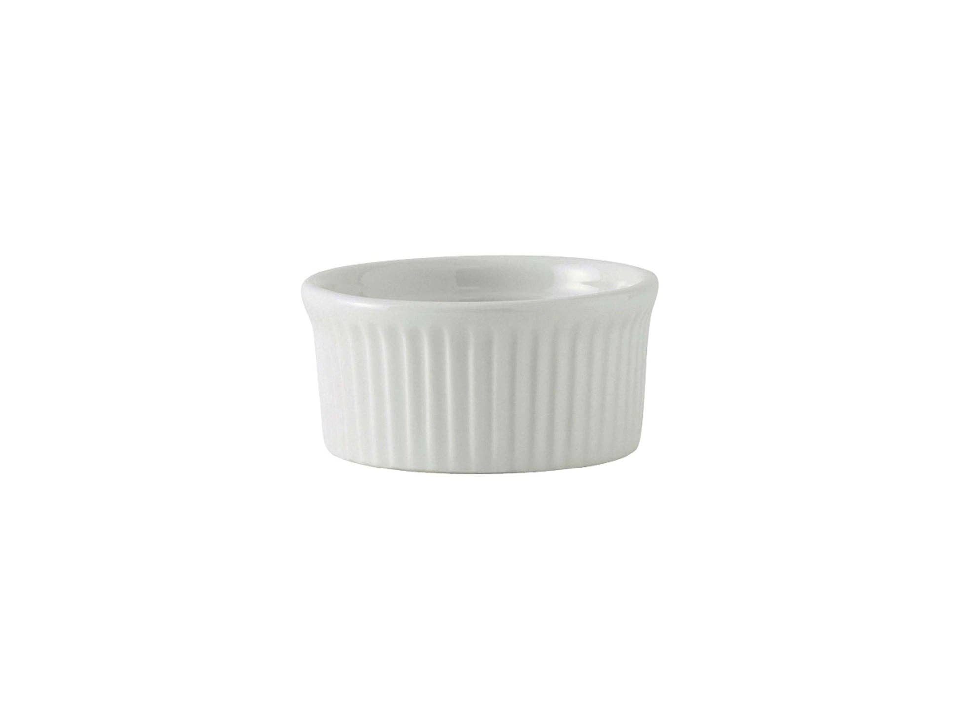 3" X 1 1/4"H RAMEKIN FLUTED 3.5 OZ Material: China Item is sold by case, a case consists 48 of this.