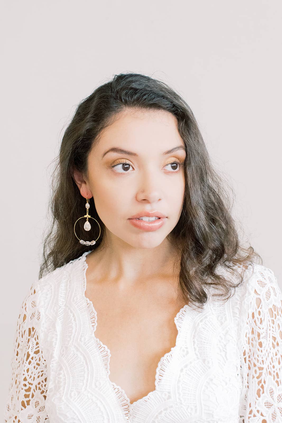 Simple and sparkling Swarovski Crystal in peach and silk make up these drop earrings. Elegant and perfect for any special occasion. These pieces are hung from gold fill or gold plated posts. Handmade in our Southern California Studio. The Shimmering Peach Swarovski Drop Earrings measure about 1 3/4" (40mm) long and come packaged on our branded cards