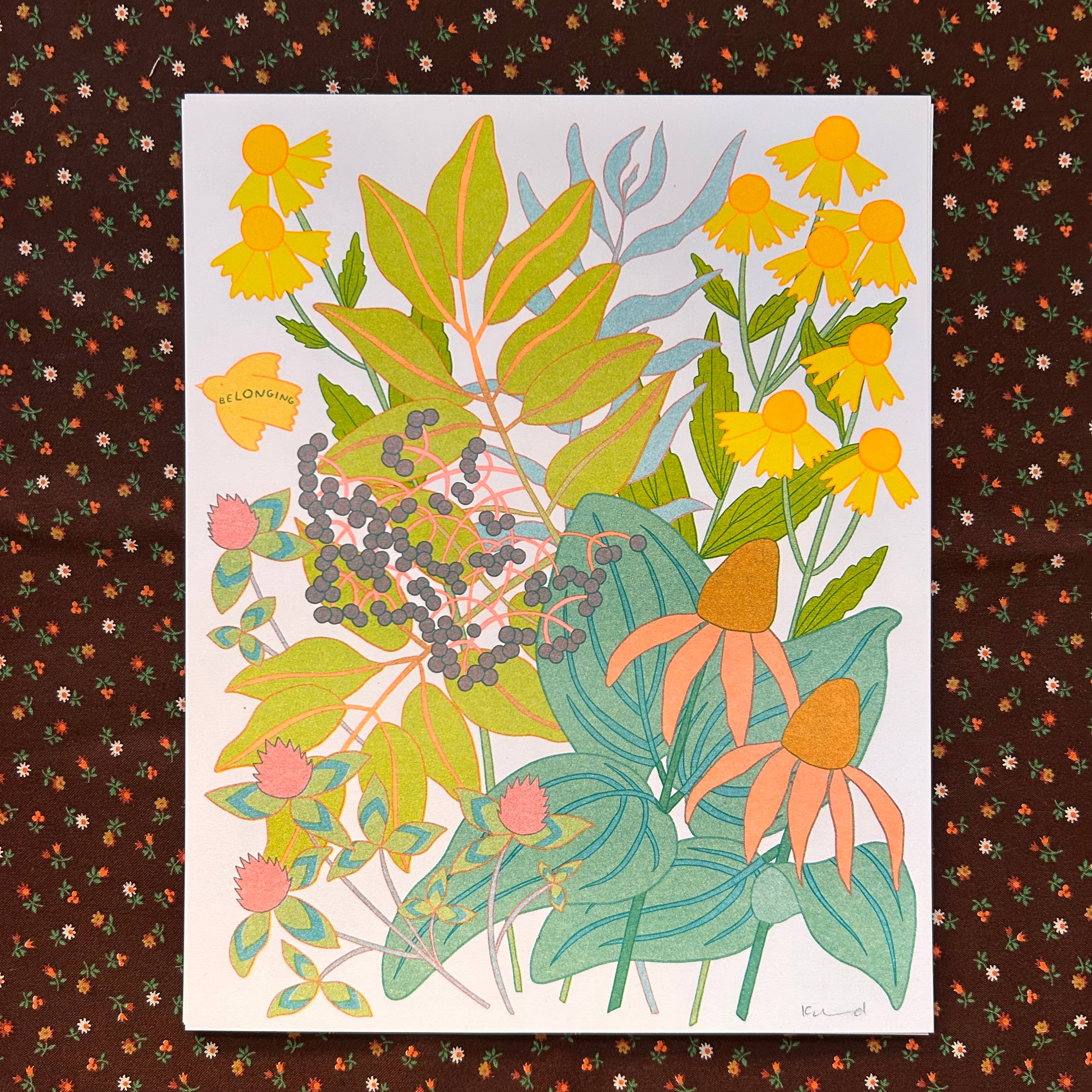 Printed with pigment ink on 100 lb cotton paper. Will be packaged in a cello sleeve with chipboard backing and branded info tag. All prints are titled and signed at the bottom.