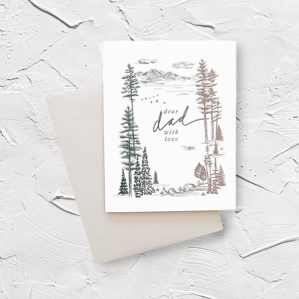 With a sophisticated yet whimsical aesthetic, these Vintage Modern cards marry simplicity and sentimentality. • 4.25" x 5.5" finished size • Two-color hand-rendered, letterpress printed illustration • 100% natural white cotton paper • Blank interior • Coordinating dark gray envelope • Cello sleeve packaging • Made in the USA