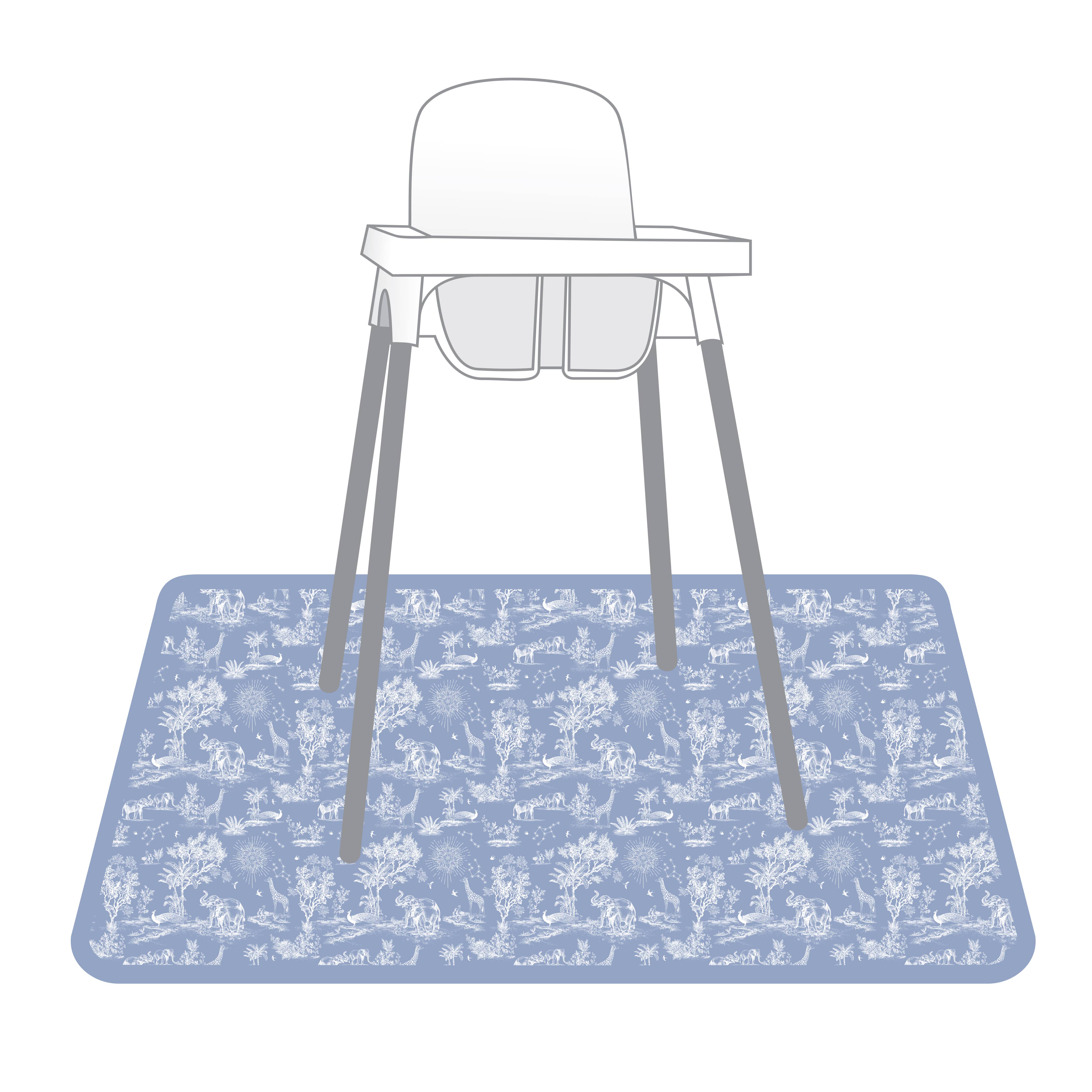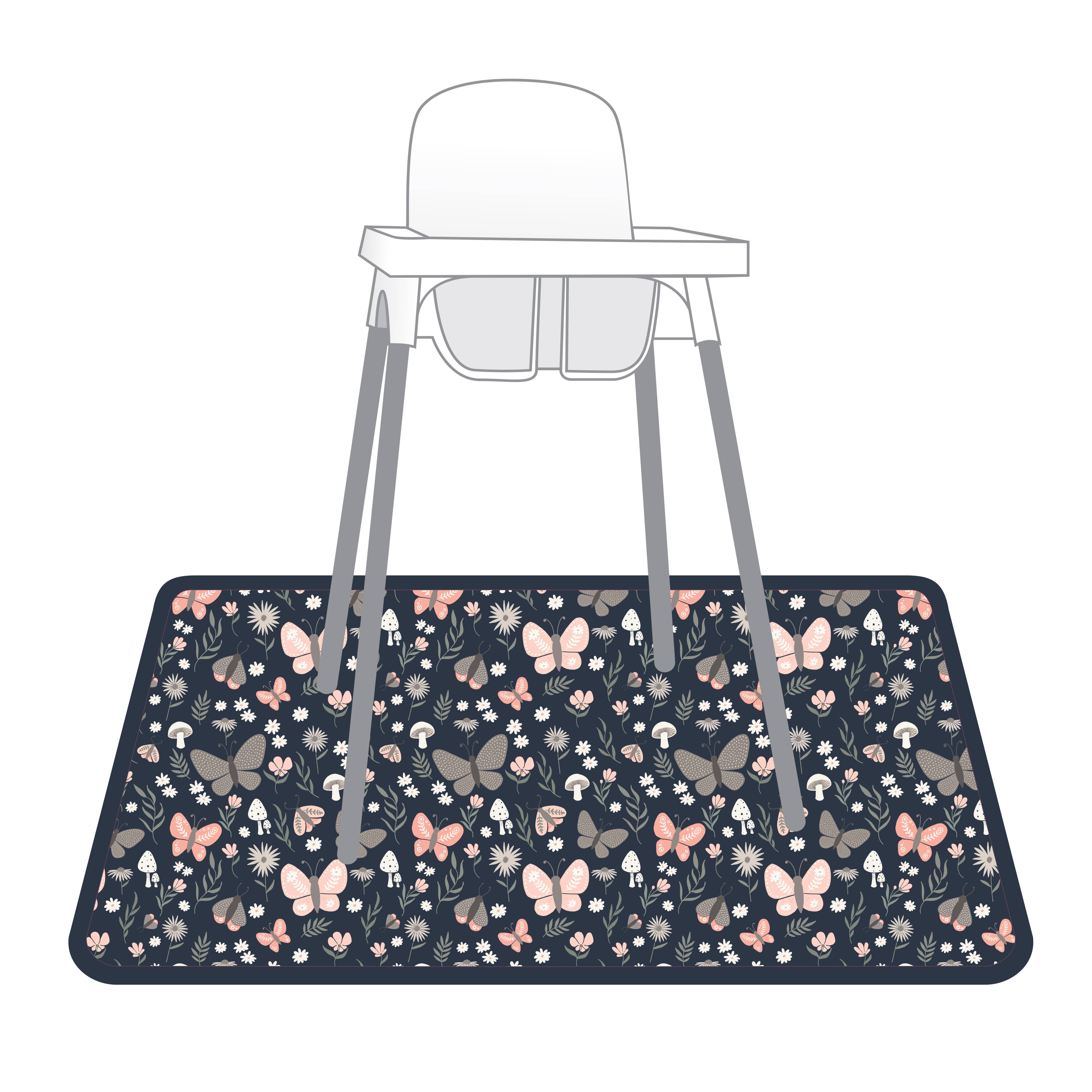 This lightweight, waterproof mat is 45" in diameter and is designed to catch spills and splashes. Ideal for: - Under the high chair - Indoor/Outdoor Picnics - Potty Training/Waterproof nap pad - Crafts and sensory play (on or under table) Our unique fabric is waterproof, stain-resistant, antimicrobial, and machine washable. Three cheers for no more scraping dried juice spots off the tile and scrubbing oatmeal out of the carpet! Weight: 8oz packaged Dim: 45" square with rounded corners